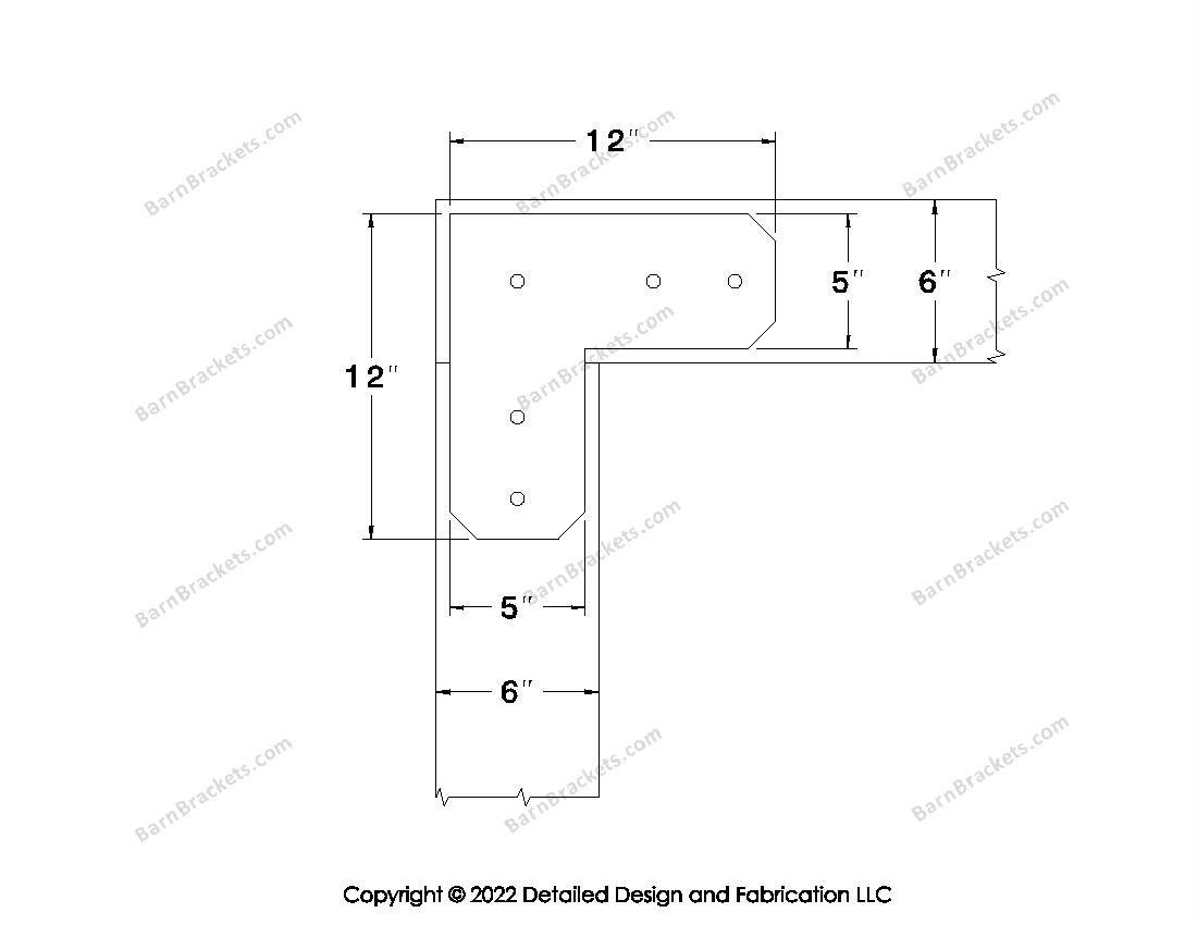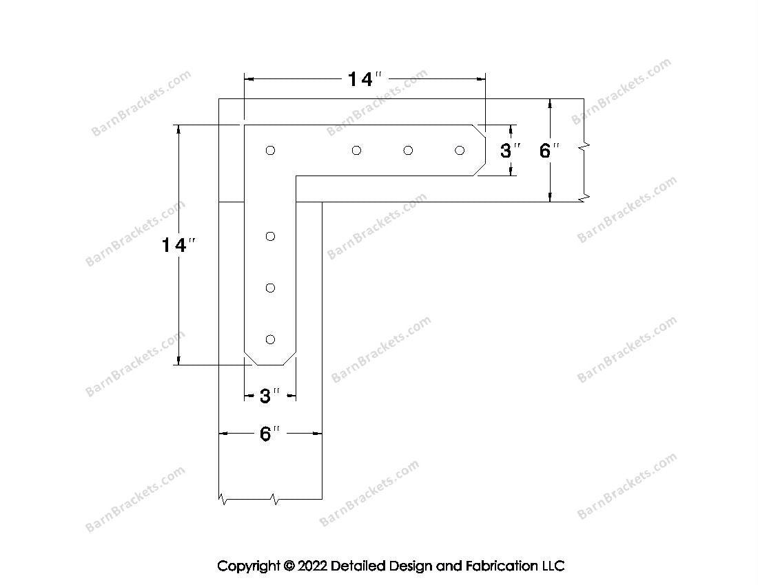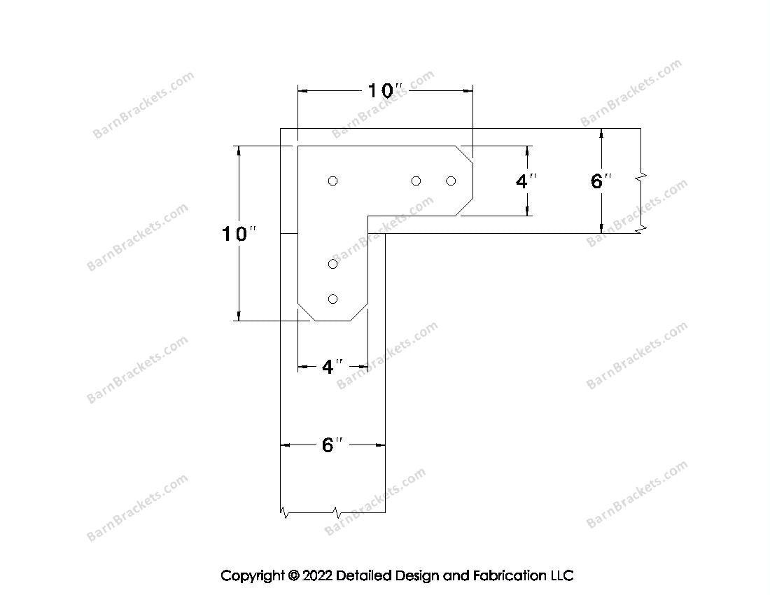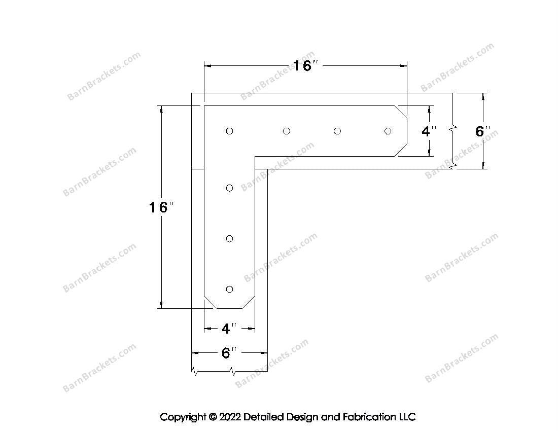 L shaped Brackets for 6 inch beams - Chamfered - Centered style holes - BarnBrackets.com