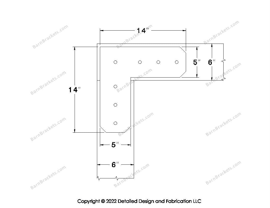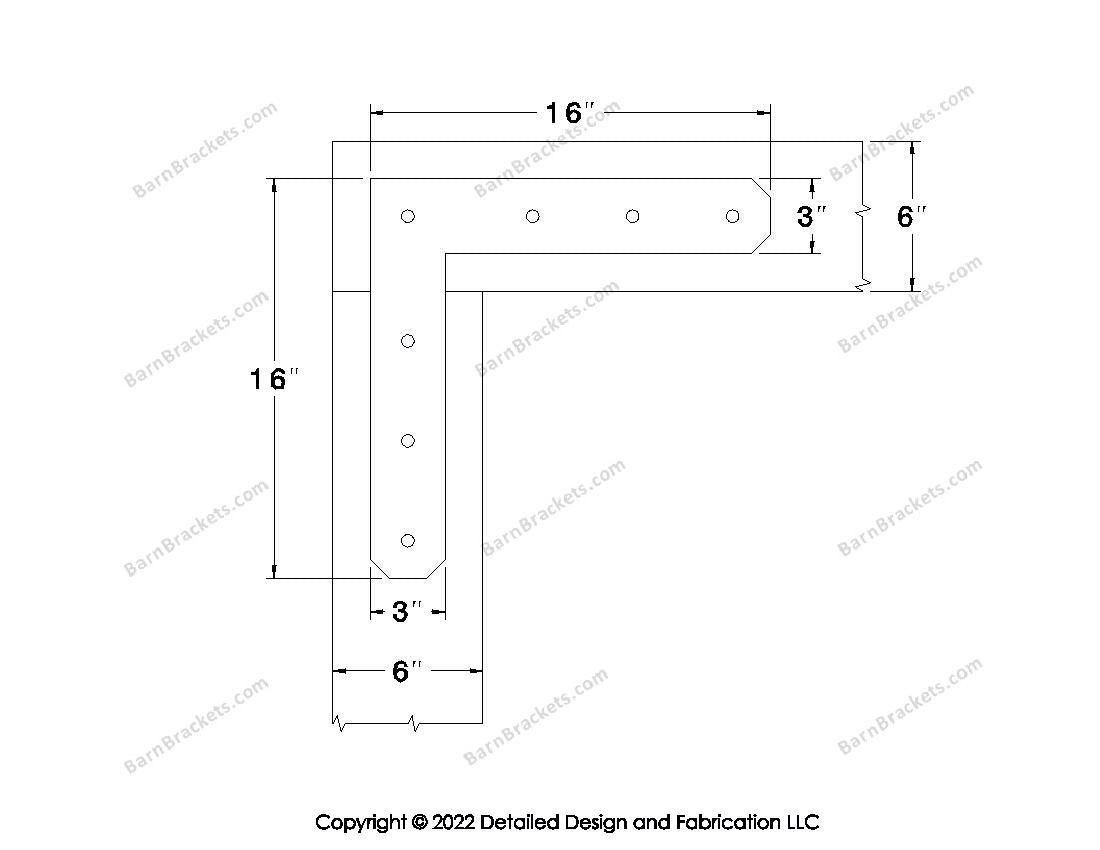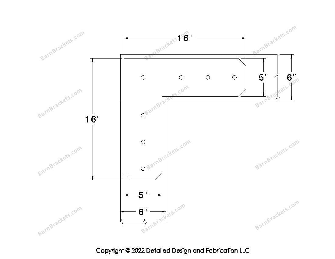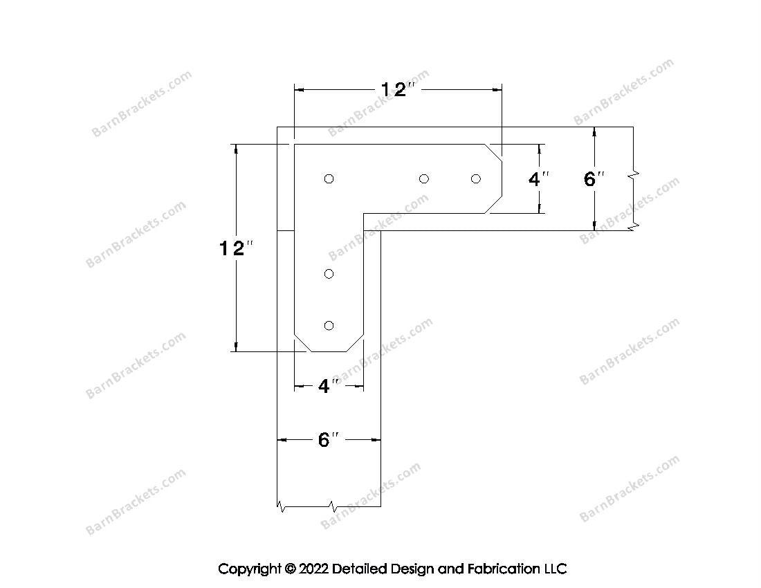 L shaped Brackets for 6 inch beams - Chamfered - Centered style holes - BarnBrackets.com