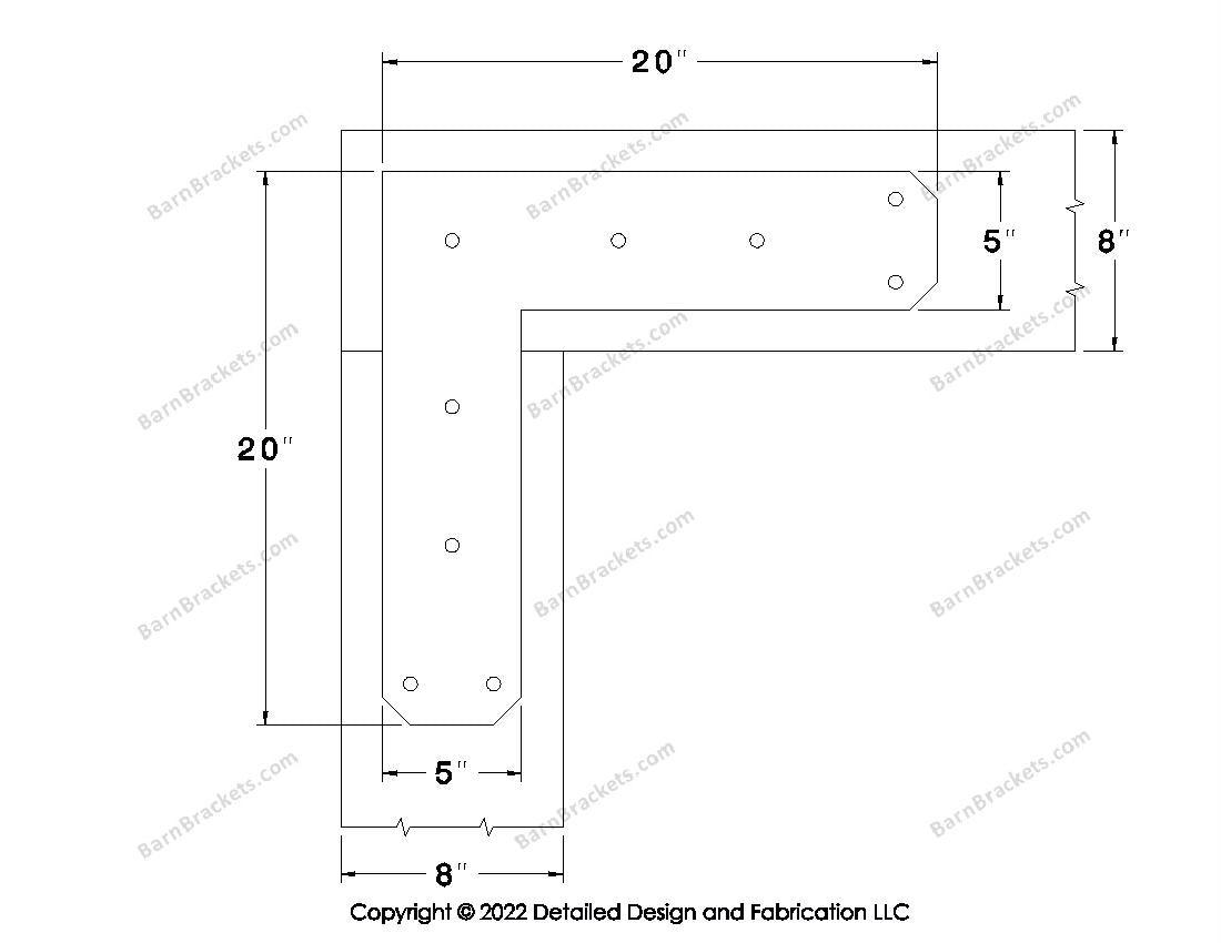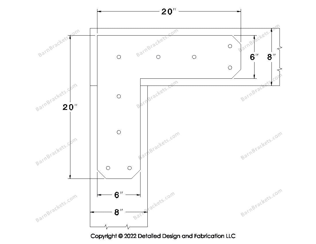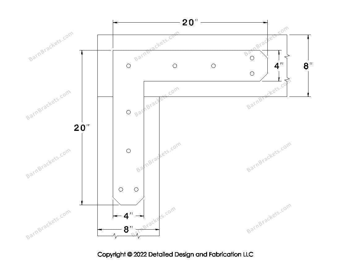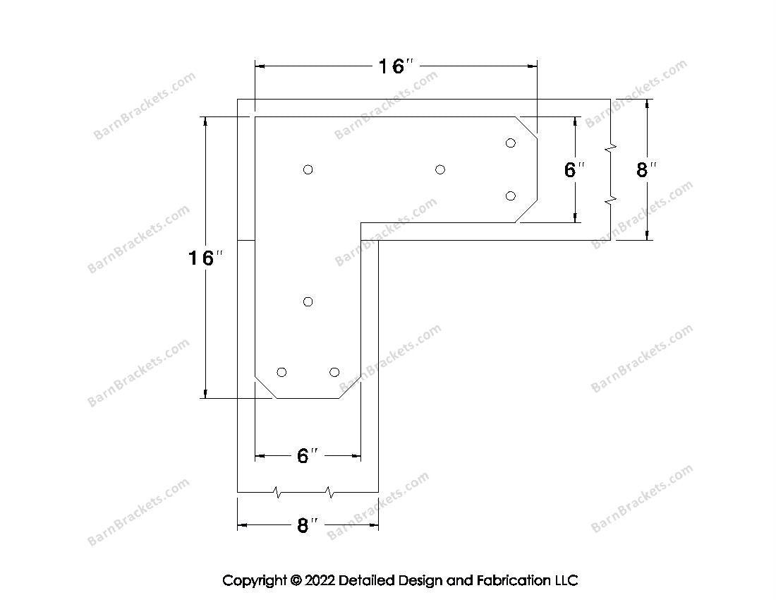 L shaped Brackets for 8 inch beams - Chamfered - Triangular style holes - BarnBrackets.com