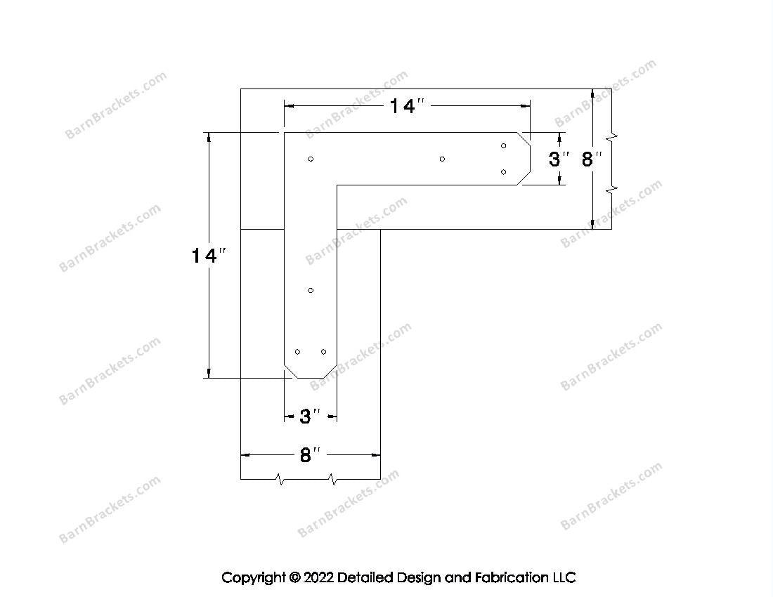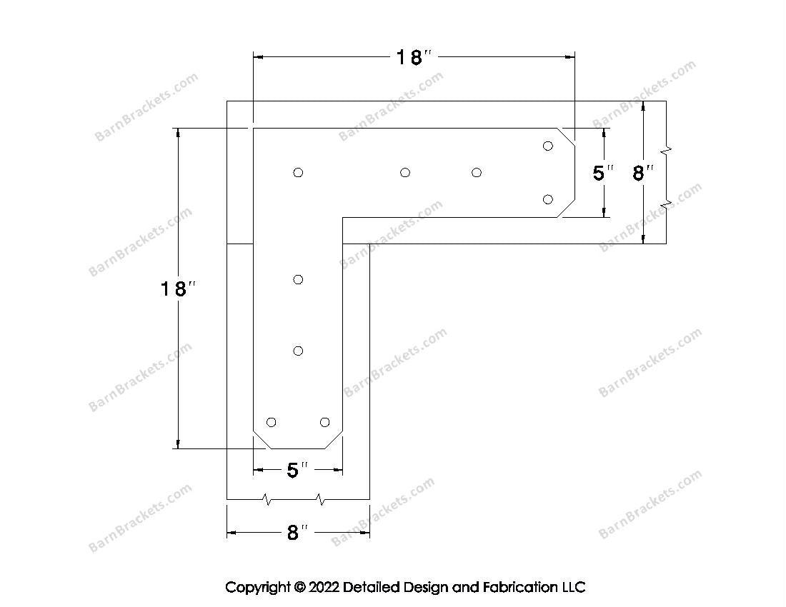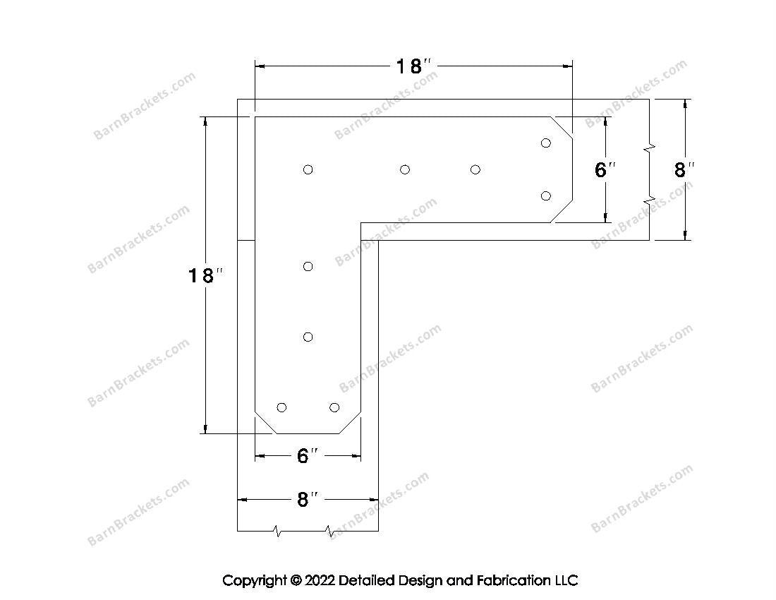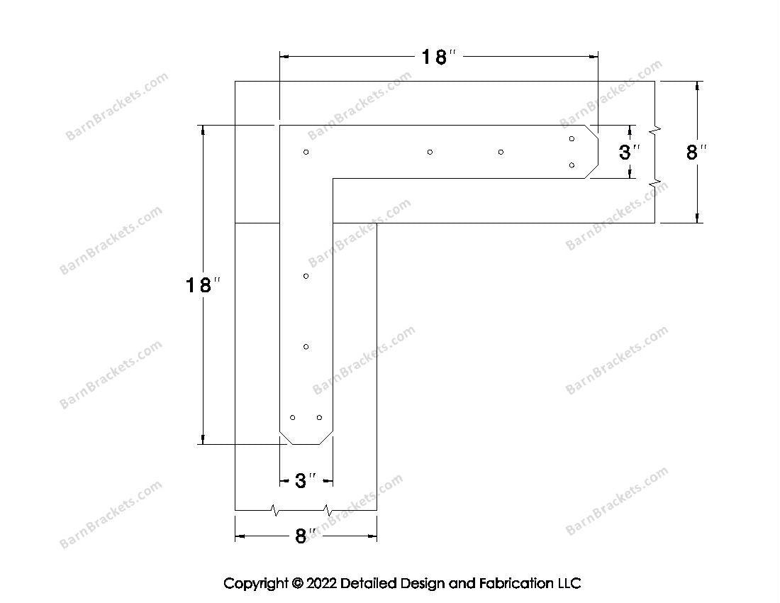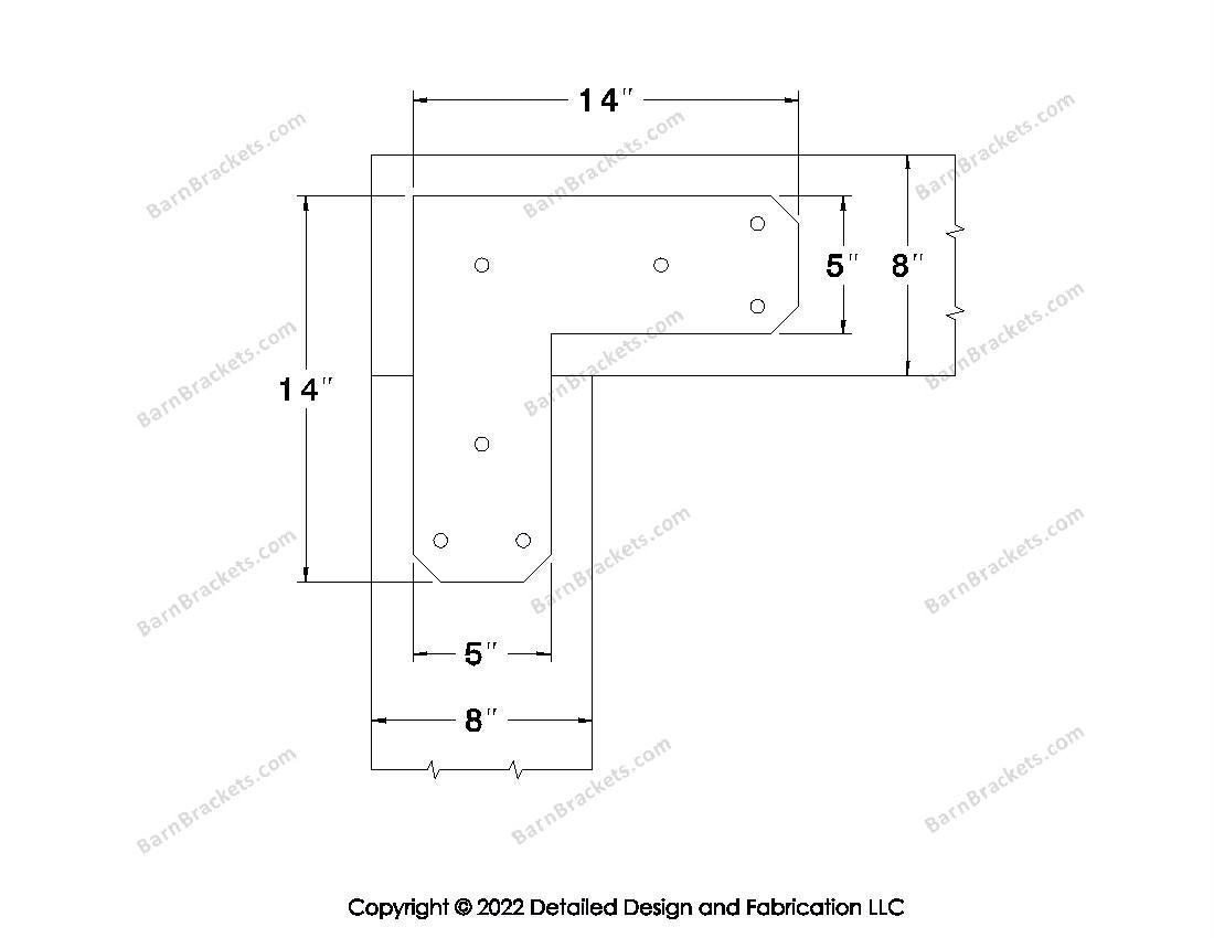 L shaped Brackets for 8 inch beams - Chamfered - Triangular style holes - BarnBrackets.com