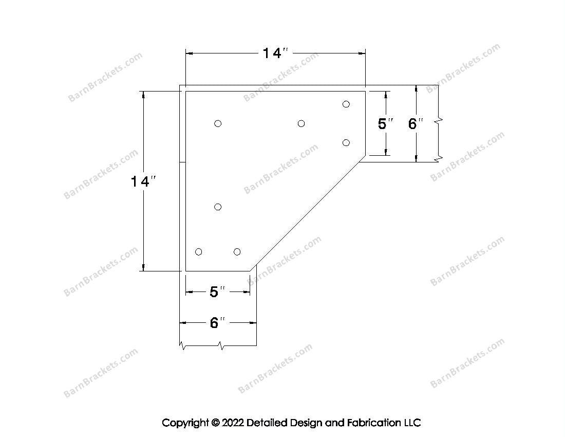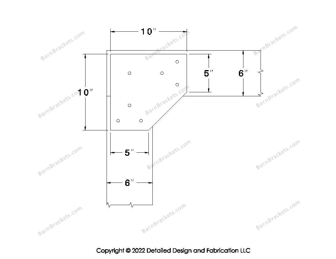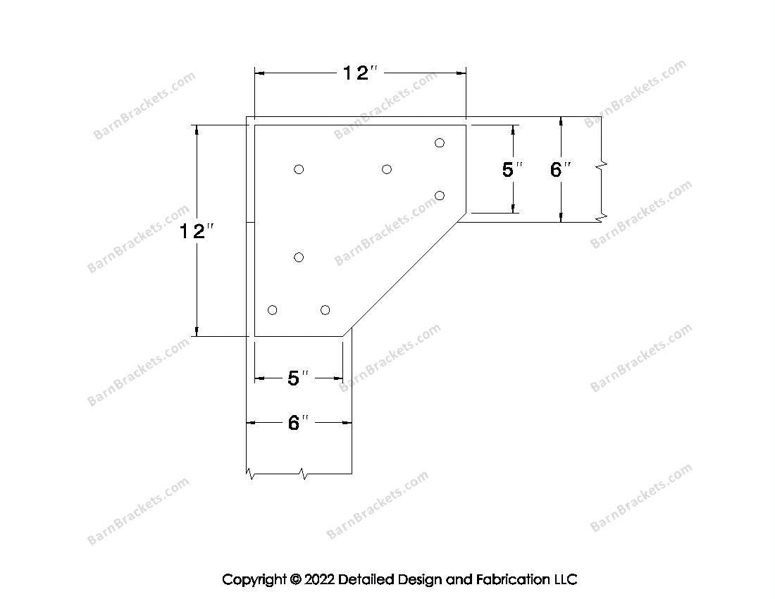 L style Gusset Brackets for 6 inch beams  - Triangular style holes - BarnBrackets.com