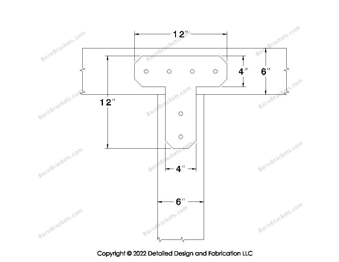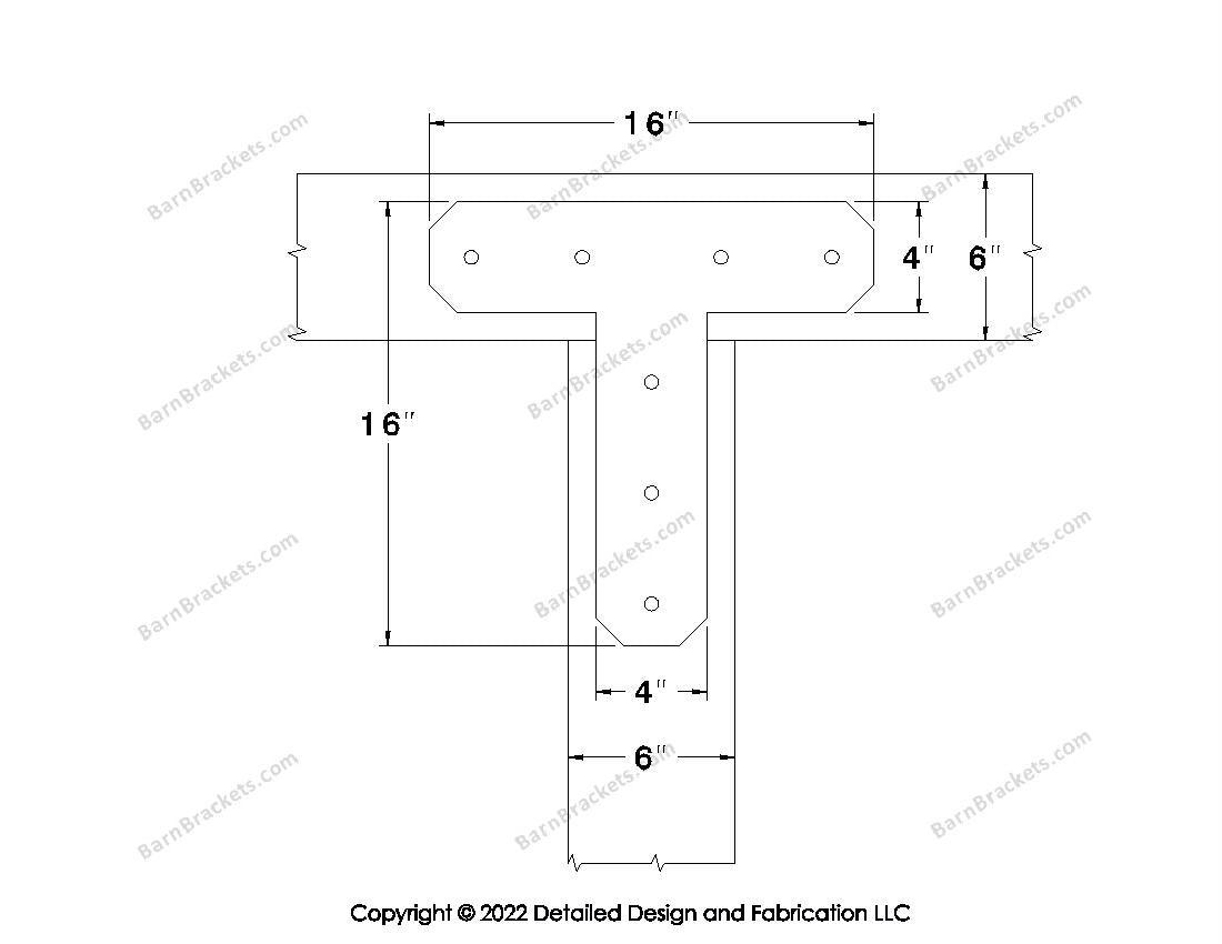 T shaped Brackets for 6 inch beams - Chamfered - Centered style holes - BarnBrackets.com