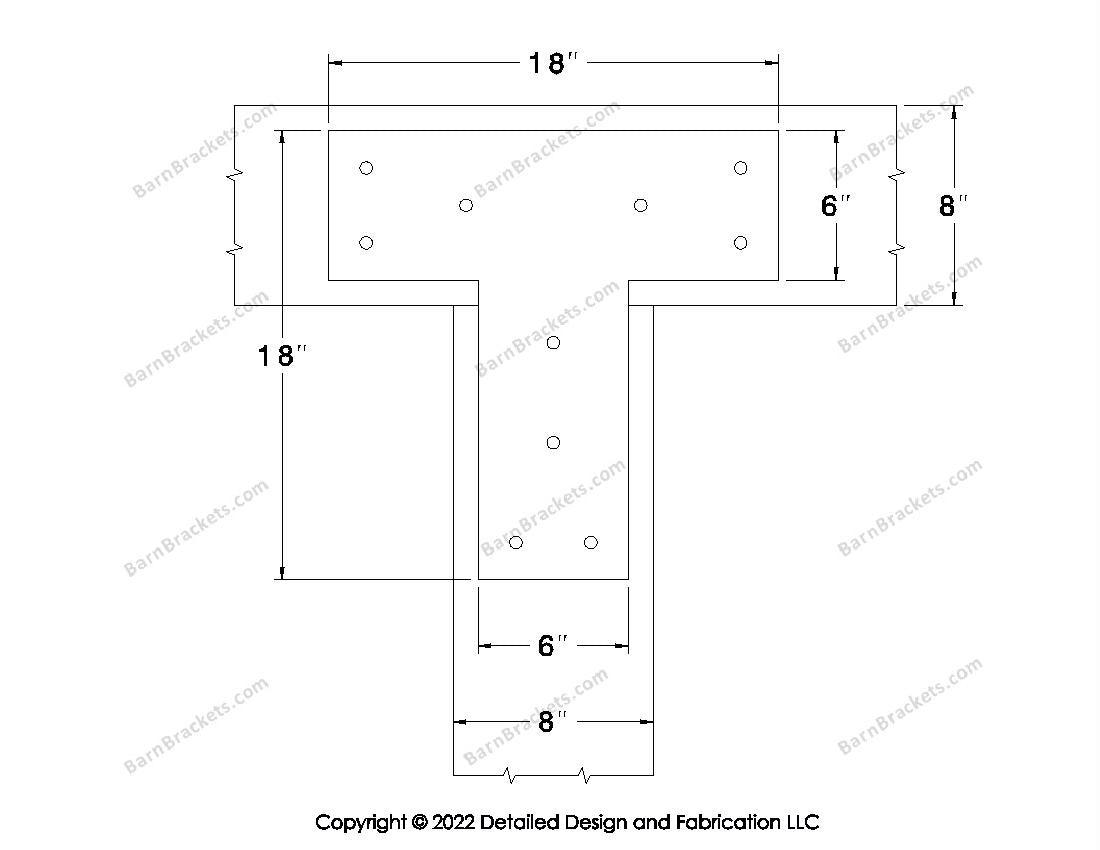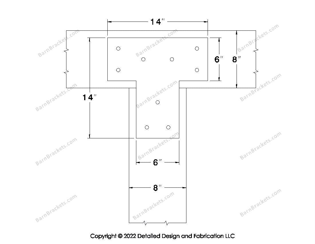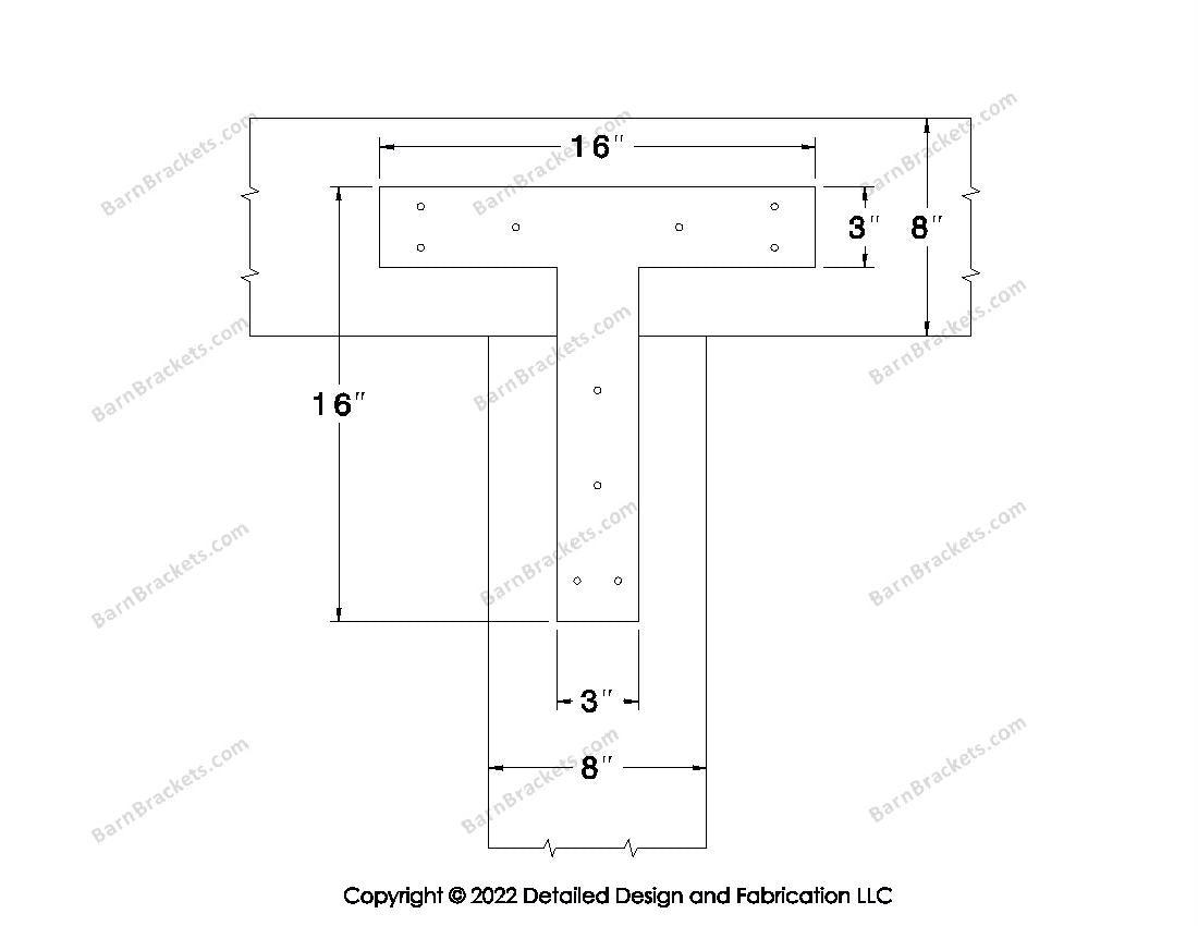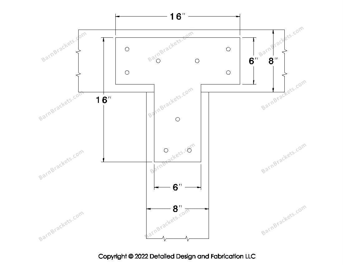 T shaped Brackets for 8 inch beams - Square - Triangular style holes - BarnBrackets.com