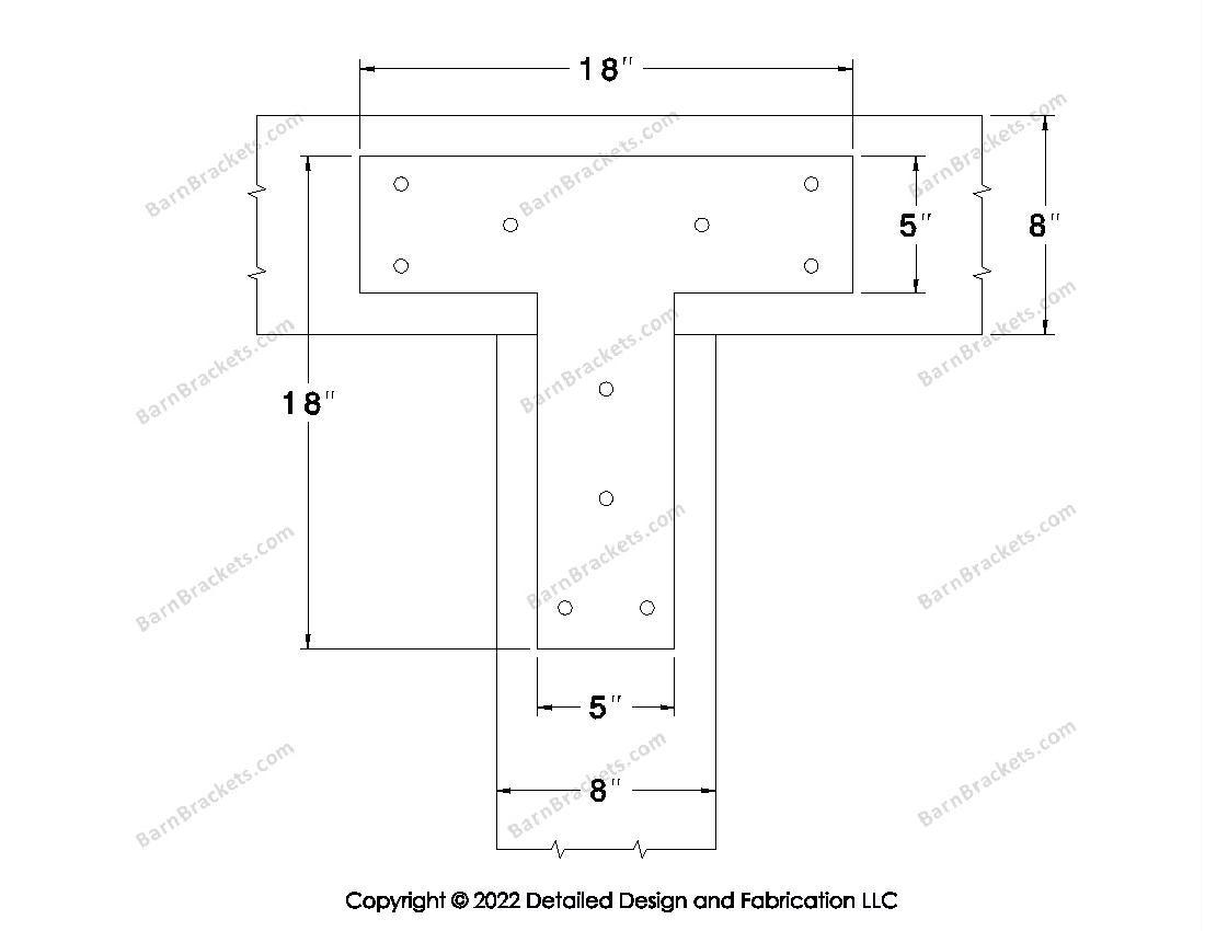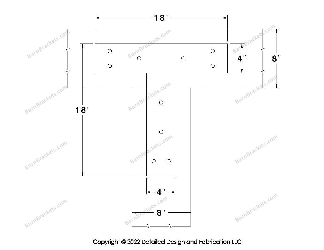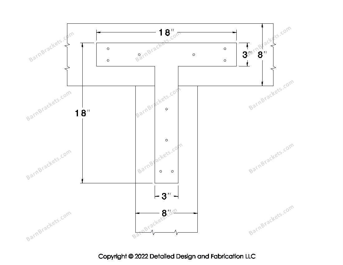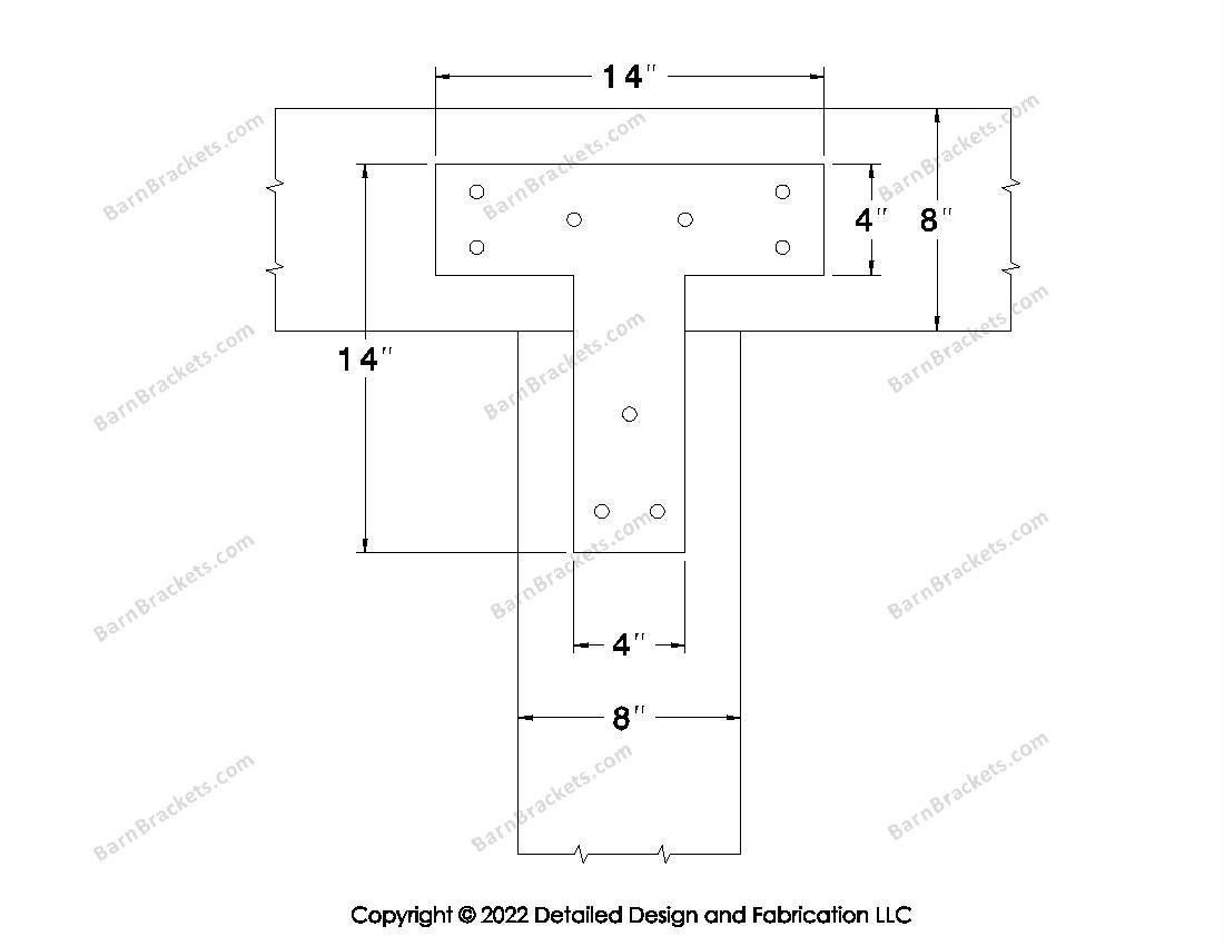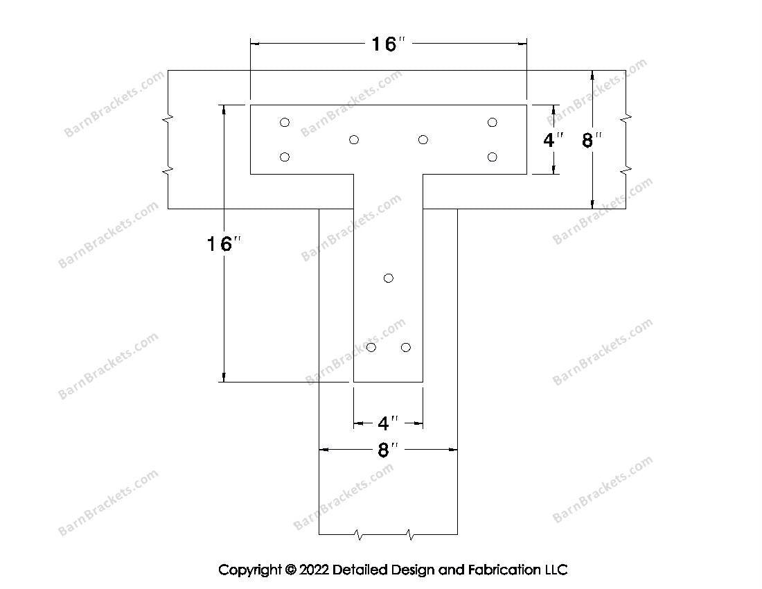 T shaped Brackets for 8 inch beams - Square - Triangular style holes - BarnBrackets.com