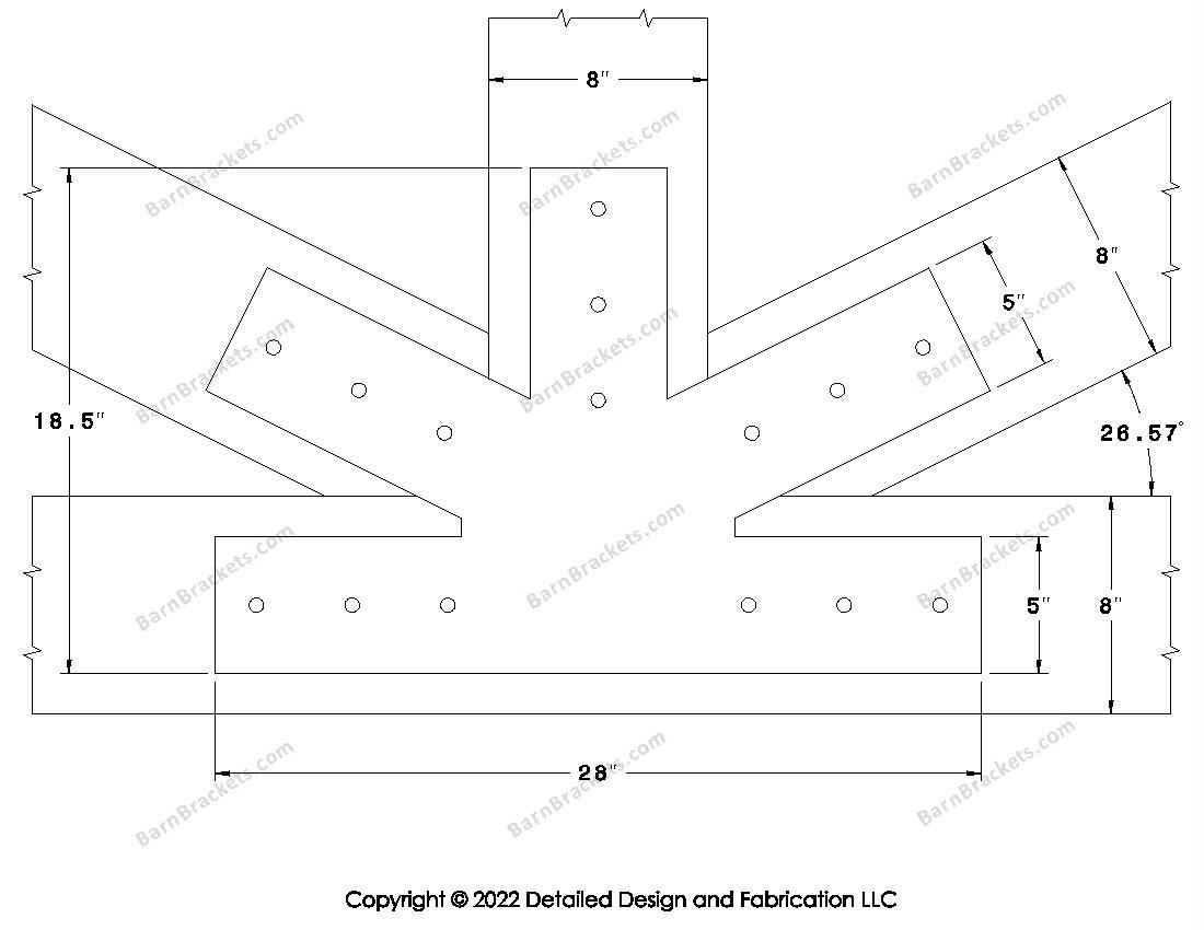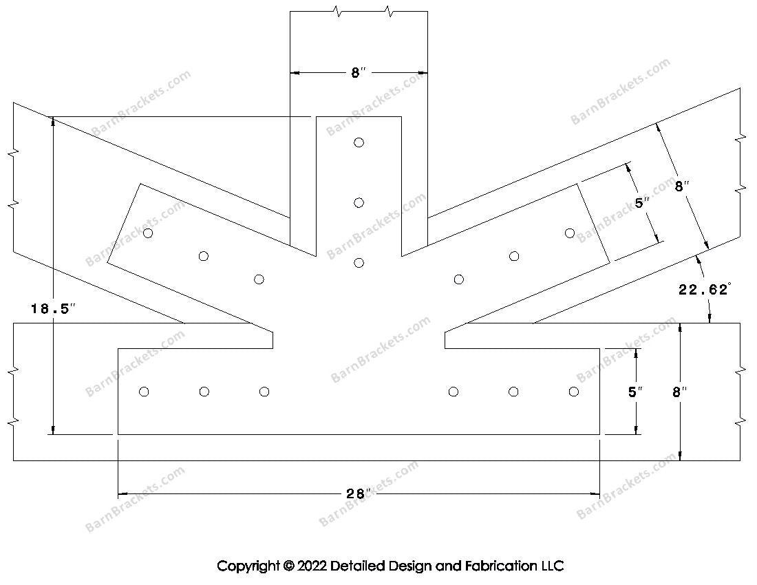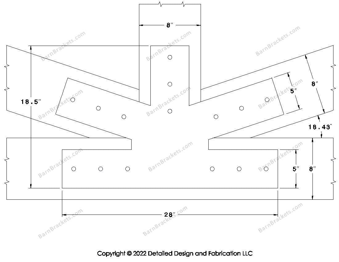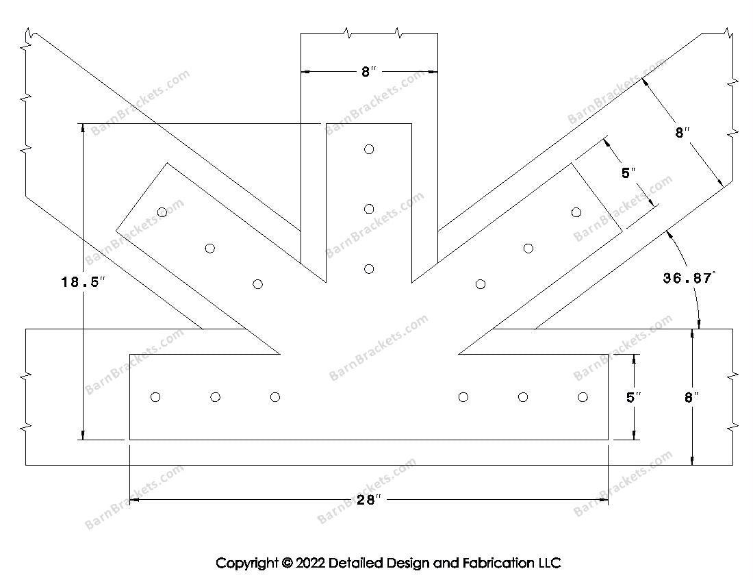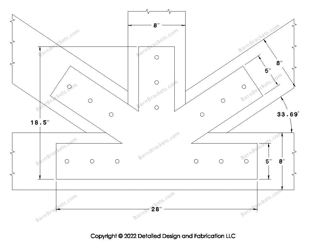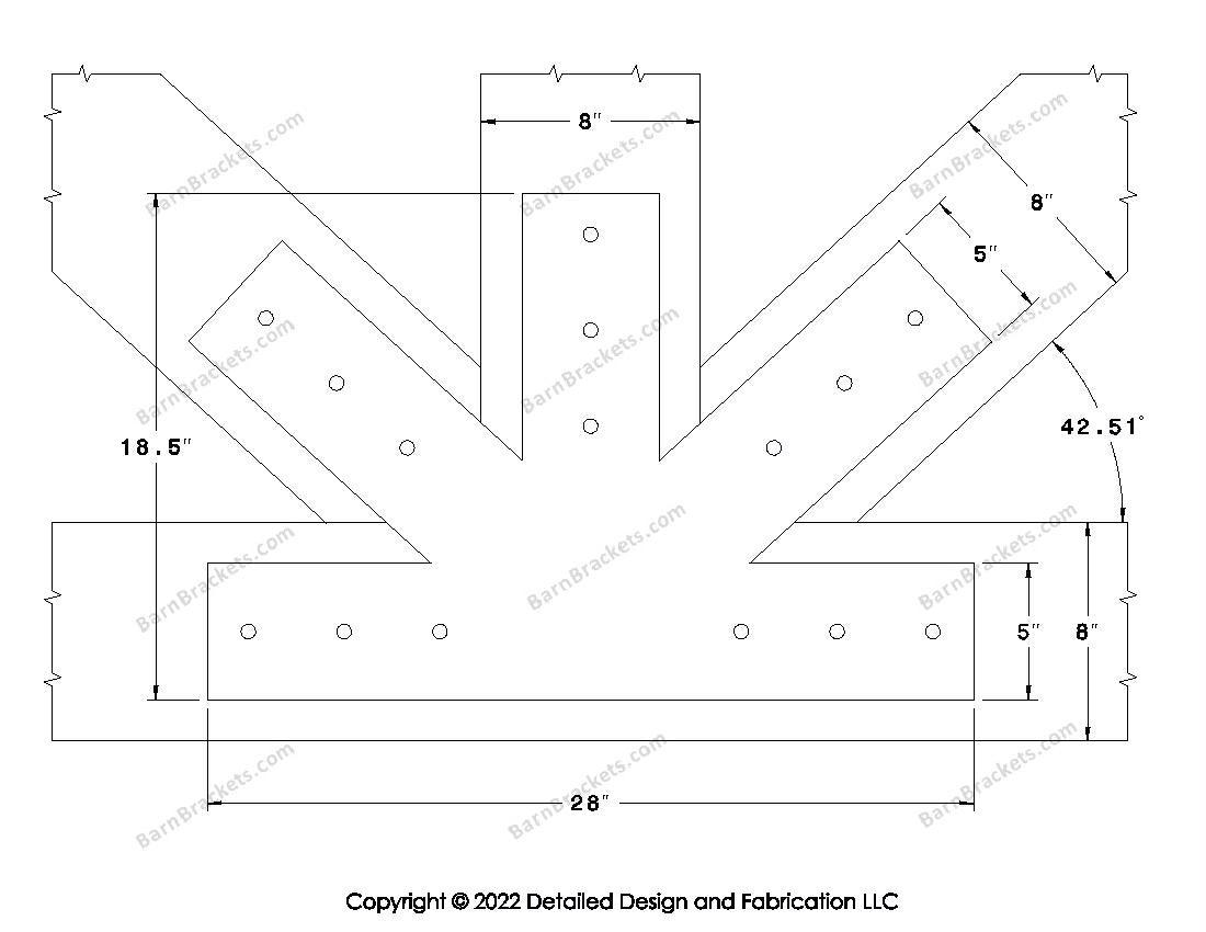 Fan Brackets for 8 inch beams - 5 inch Large centered joint - Square - Centered style holes - BarnBrackets.com