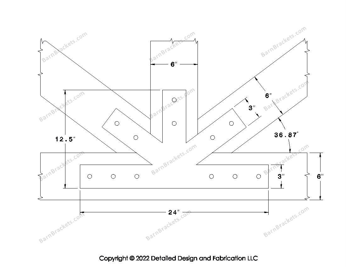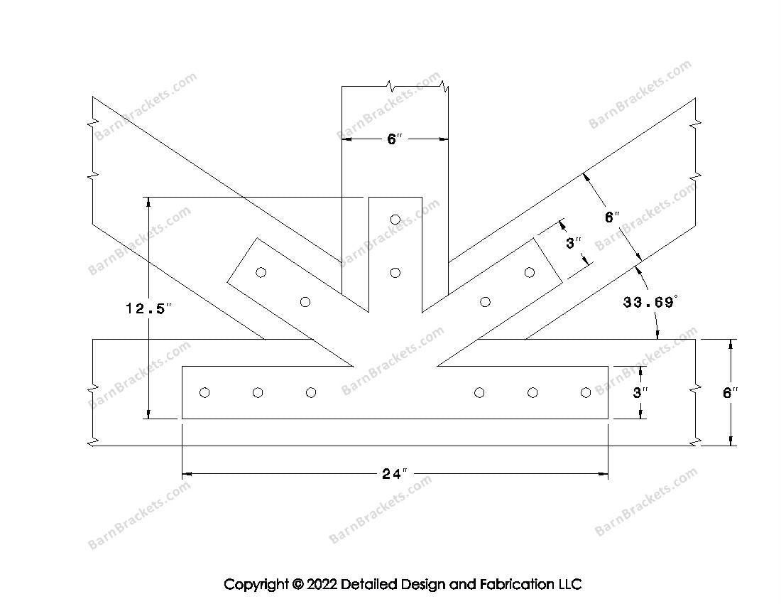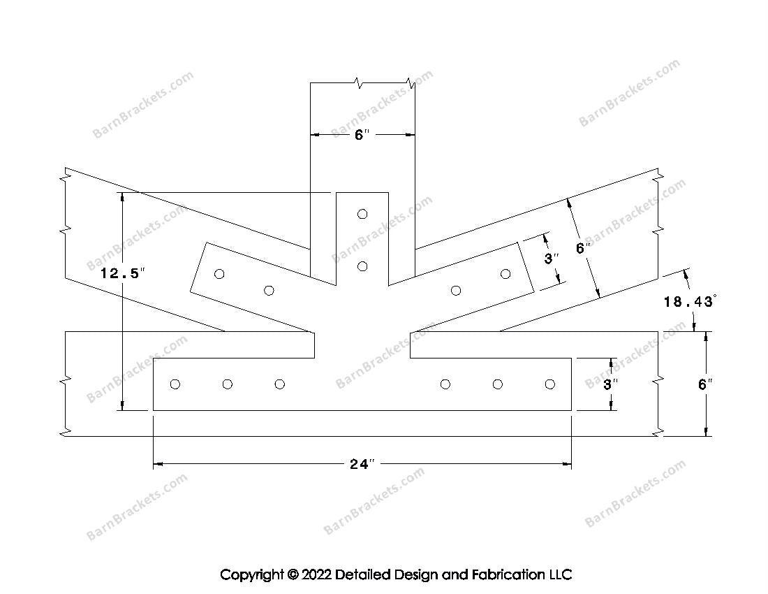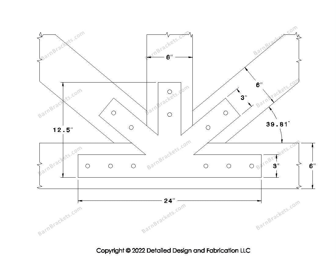 Fan Brackets for 6 inch beams - 3 inch Wide Centered joint - Square - Centered style holes - BarnBrackets.com