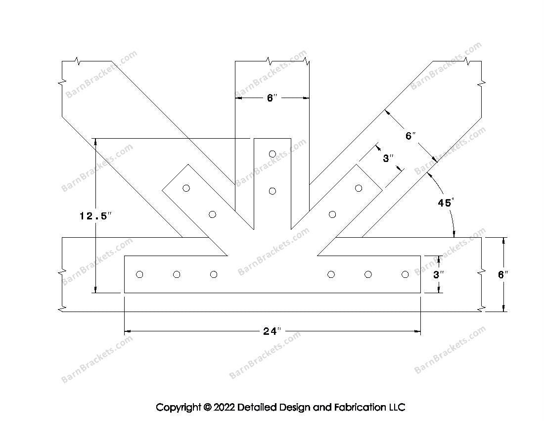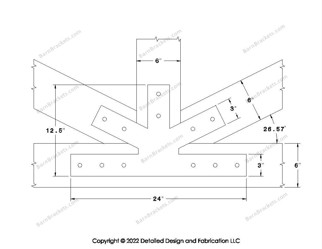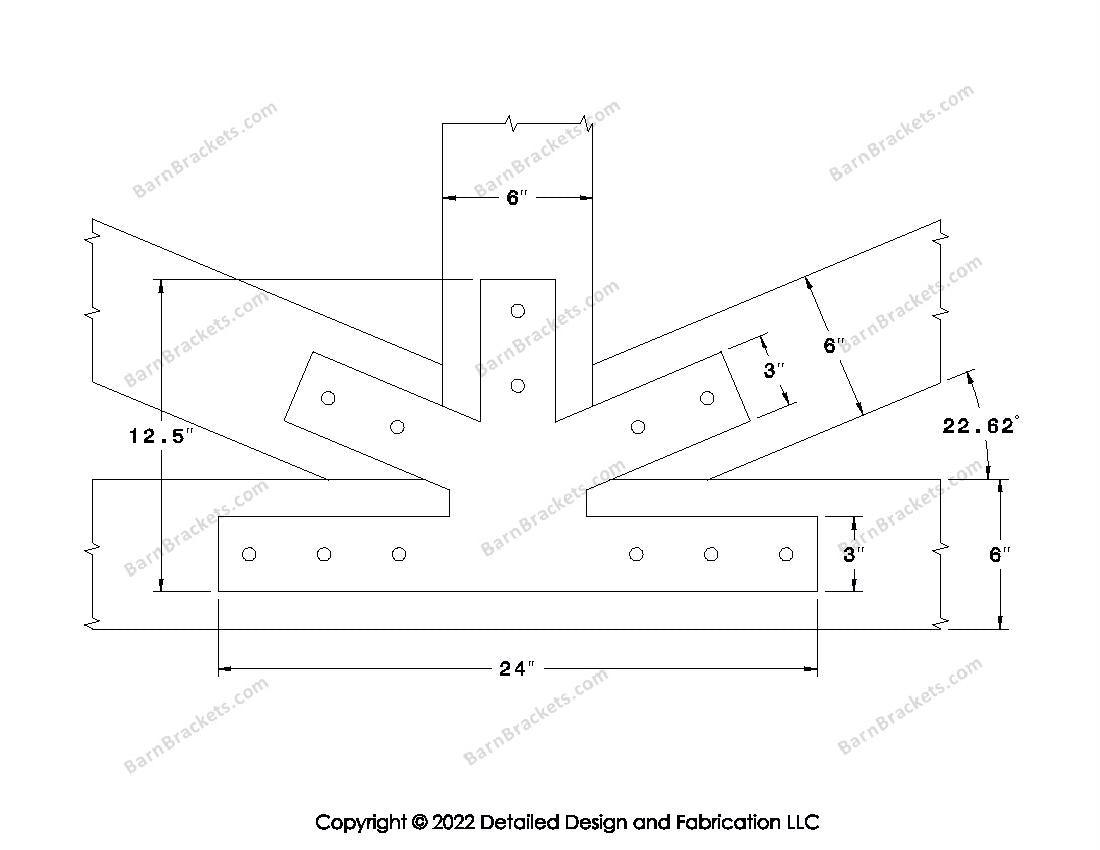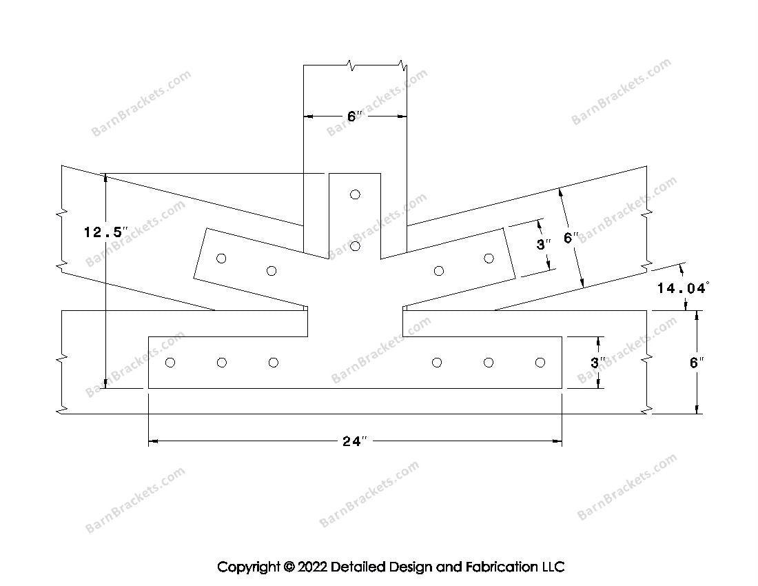 Fan Brackets for 6 inch beams - 3 inch Wide Centered joint - Square - Centered style holes - BarnBrackets.com