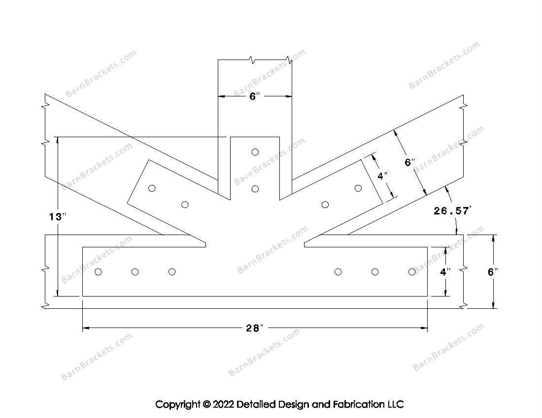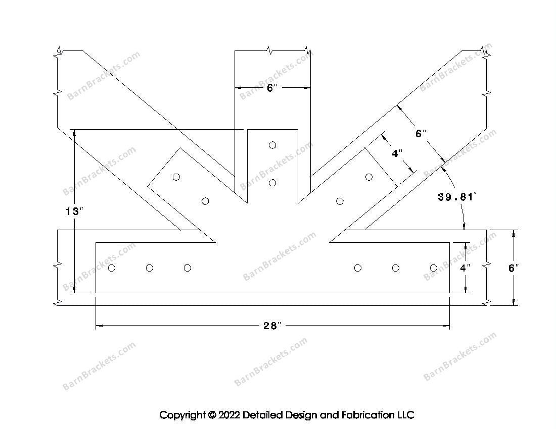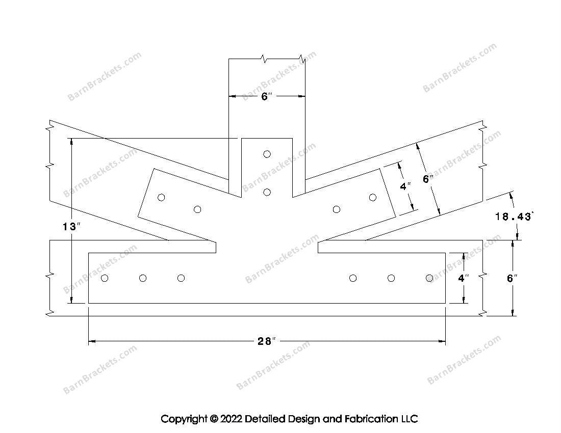 Fan Brackets for 6 inch beams - 4 inch Wide centered joint - Square - Centered style holes - BarnBrackets.com