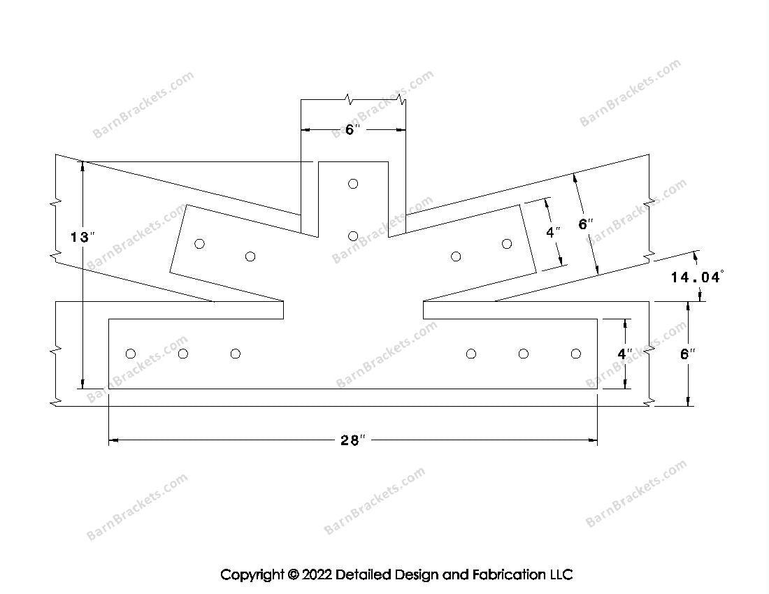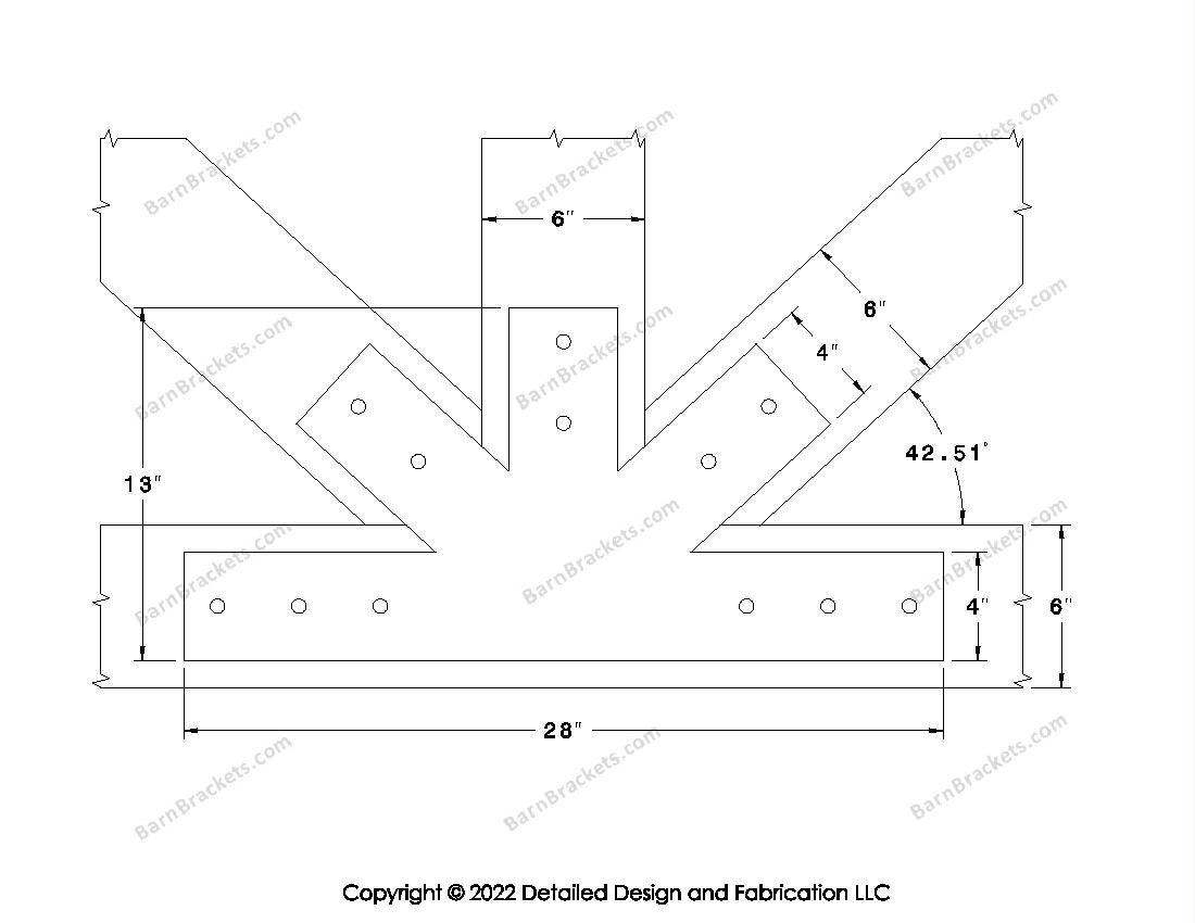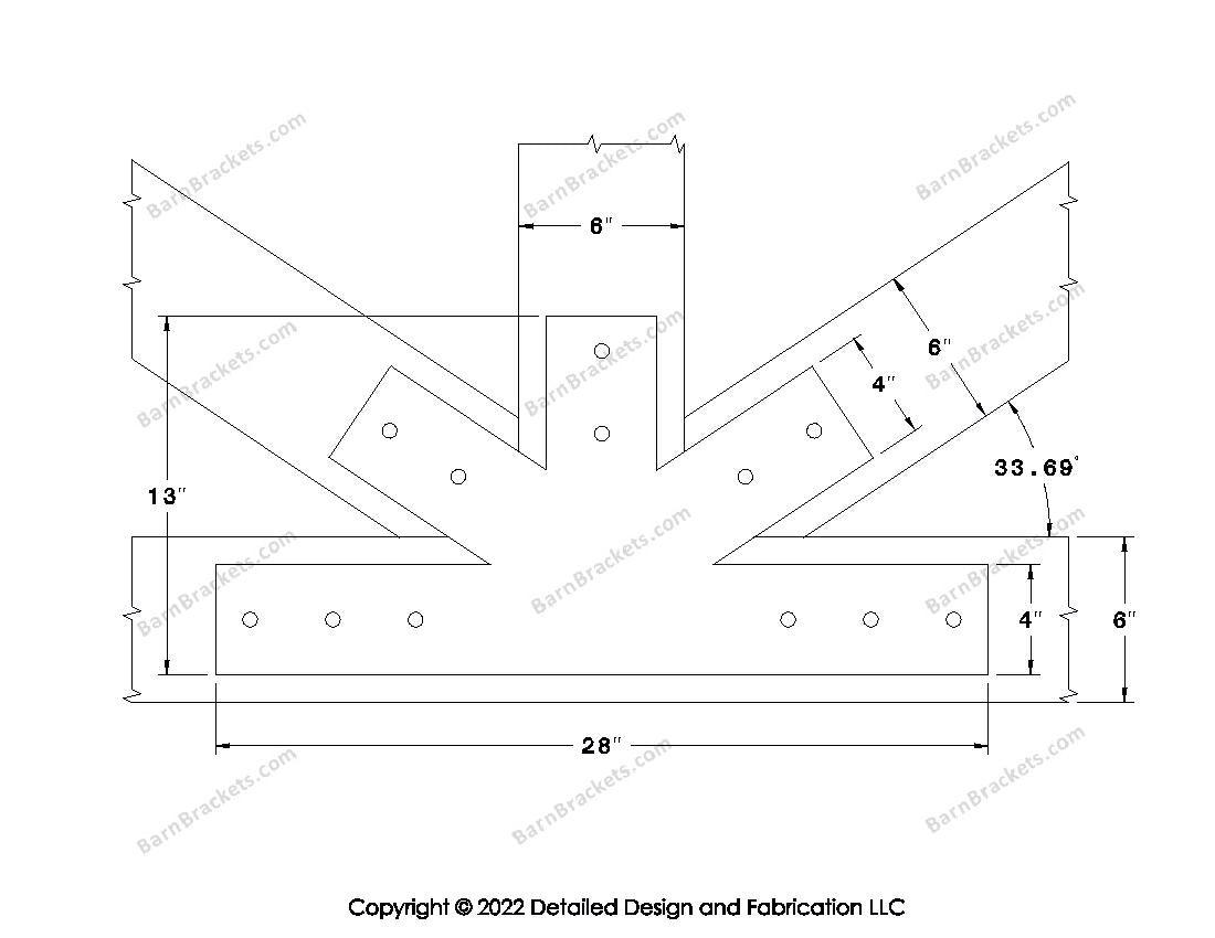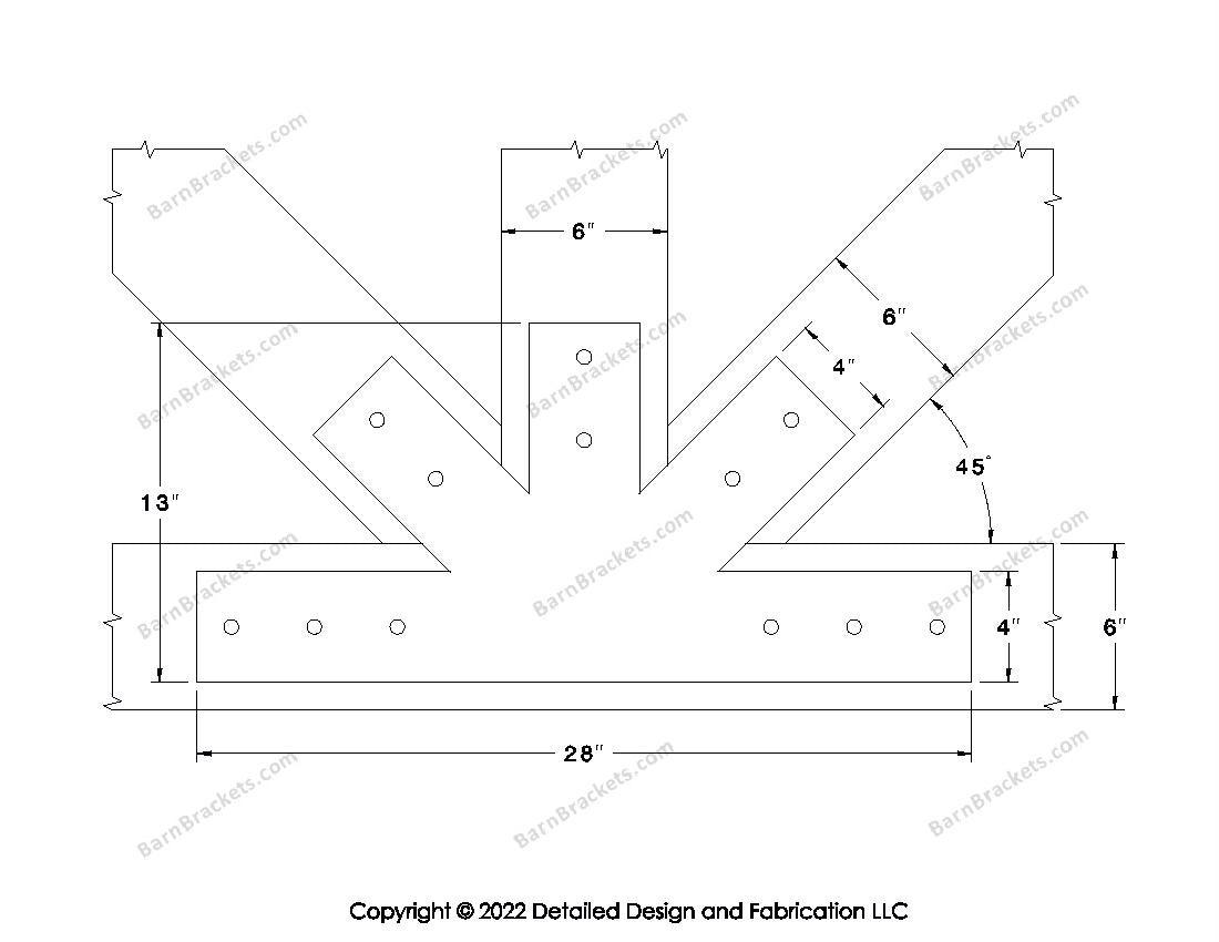 Fan Brackets for 6 inch beams - 4 inch Wide centered joint - Square - Centered style holes - BarnBrackets.com