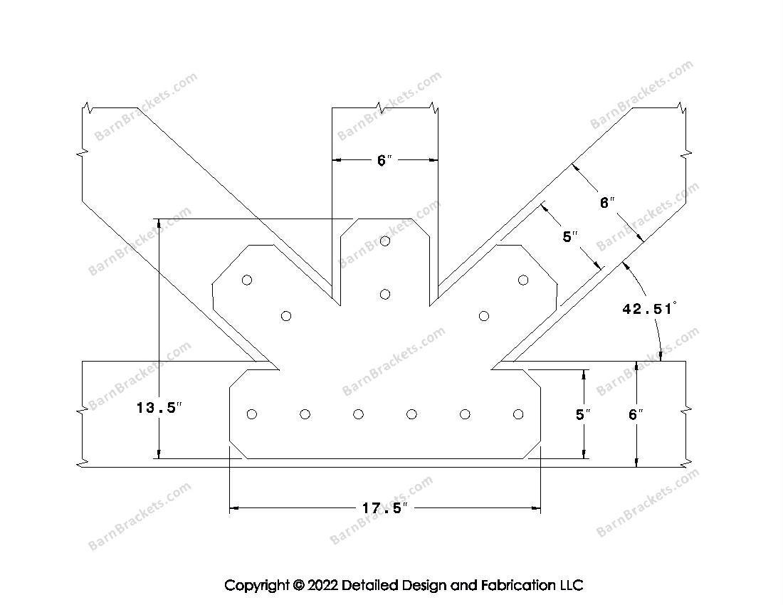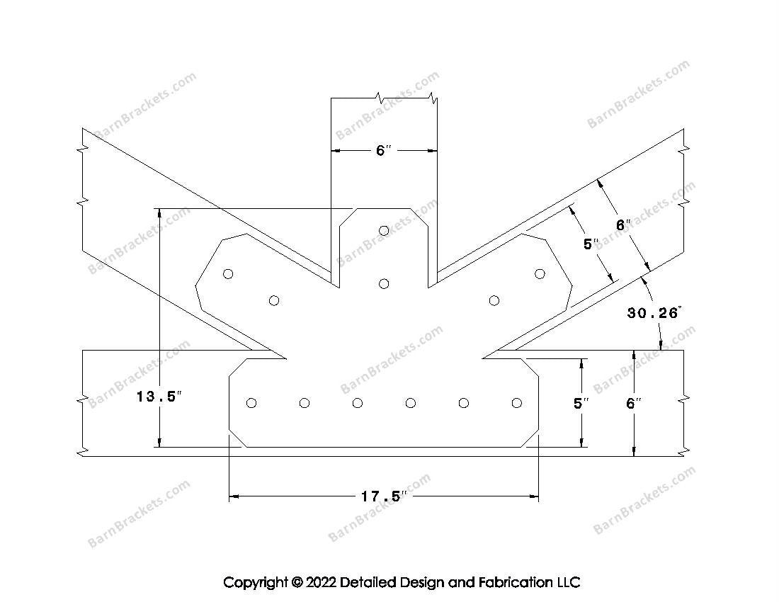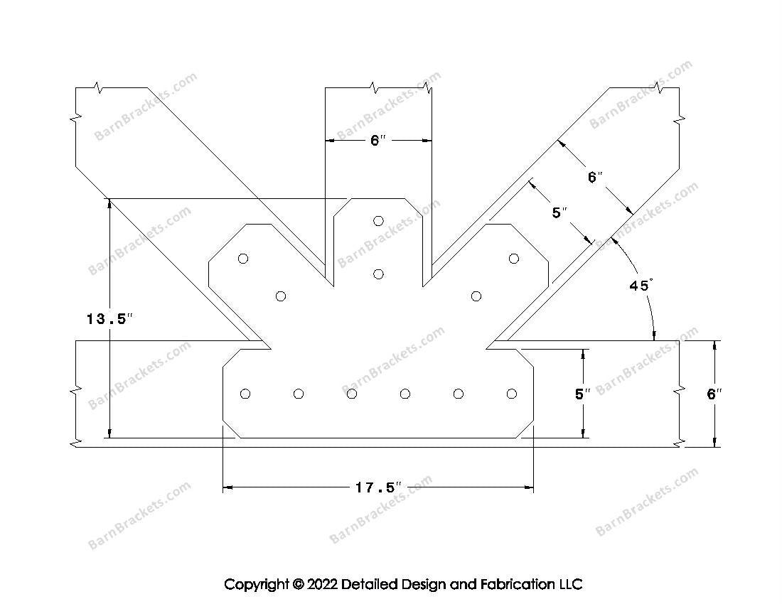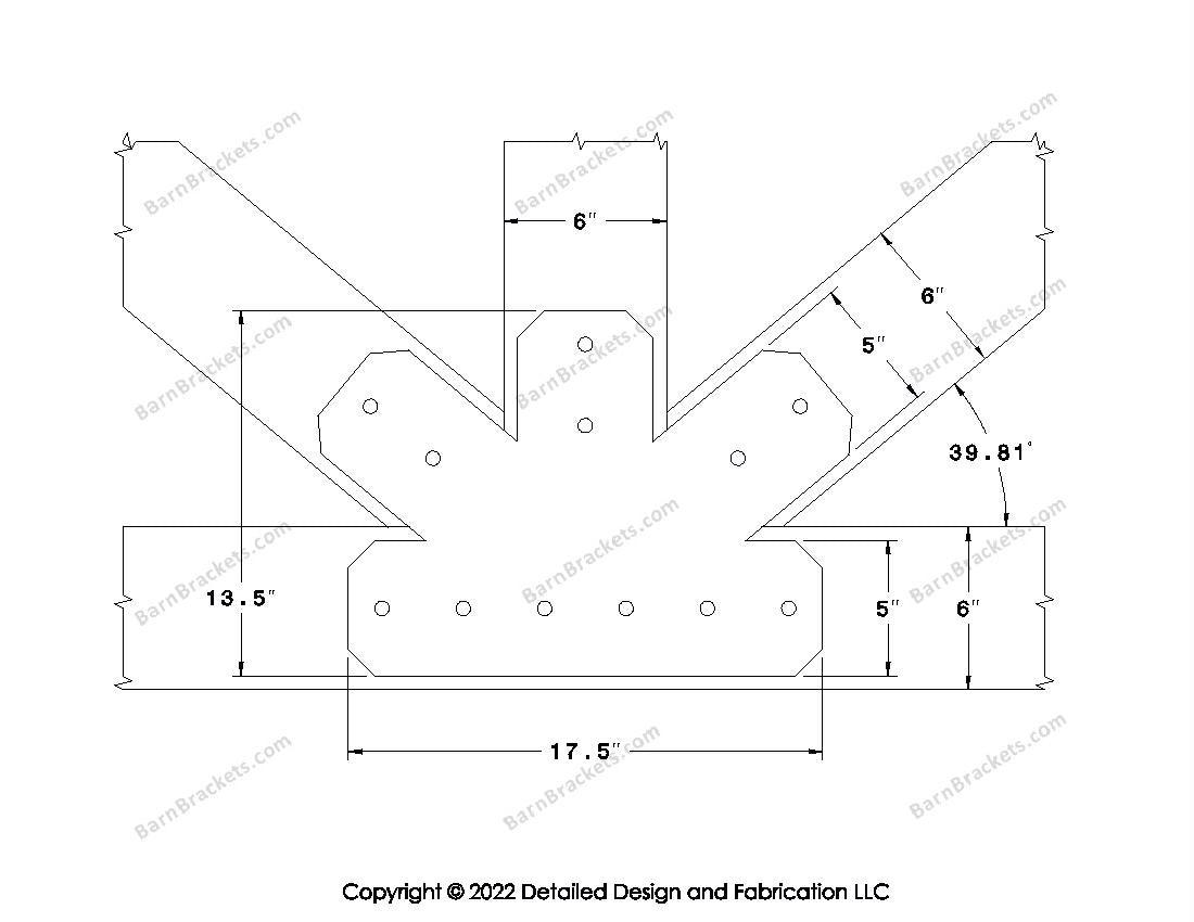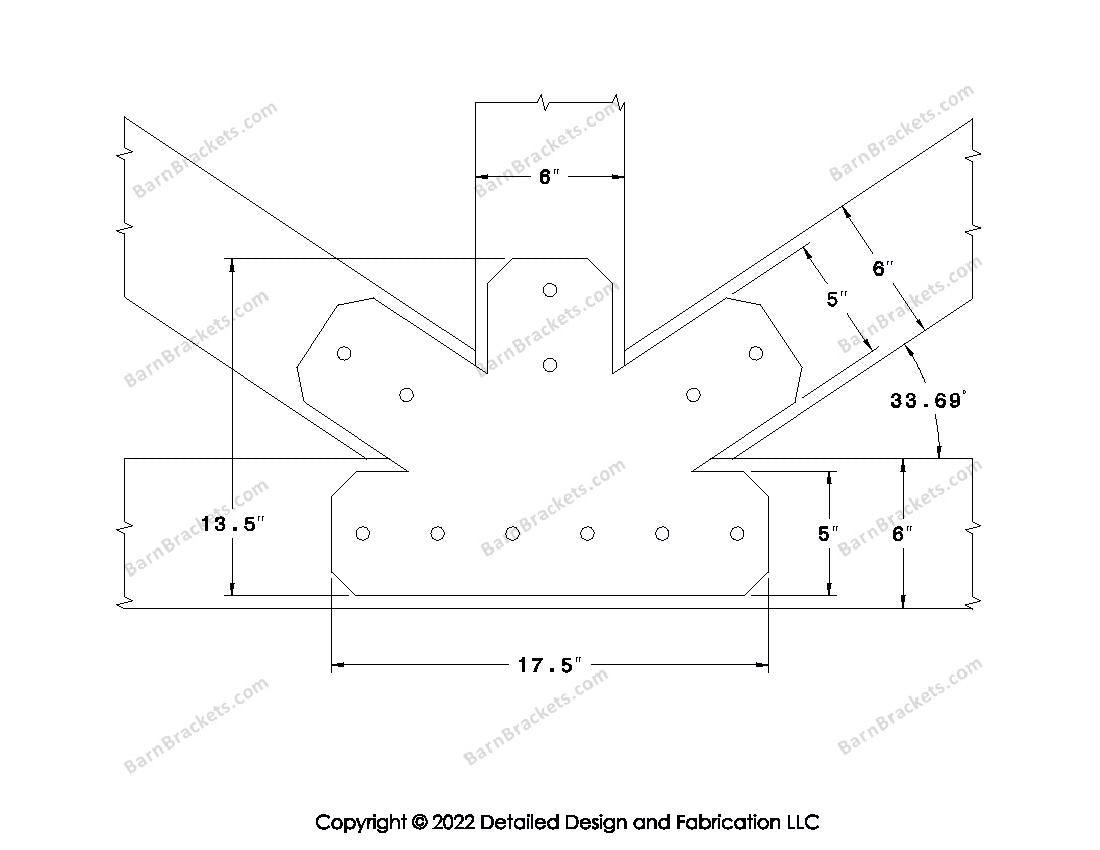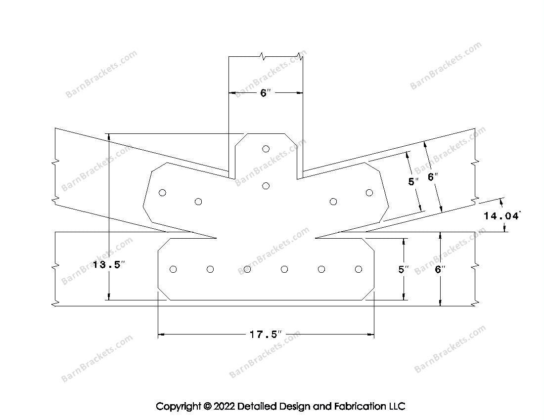 Fan Brackets for 6 inch beams - 5 inch Regular centered joint - Chamfered - Centered style holes - BarnBrackets.com