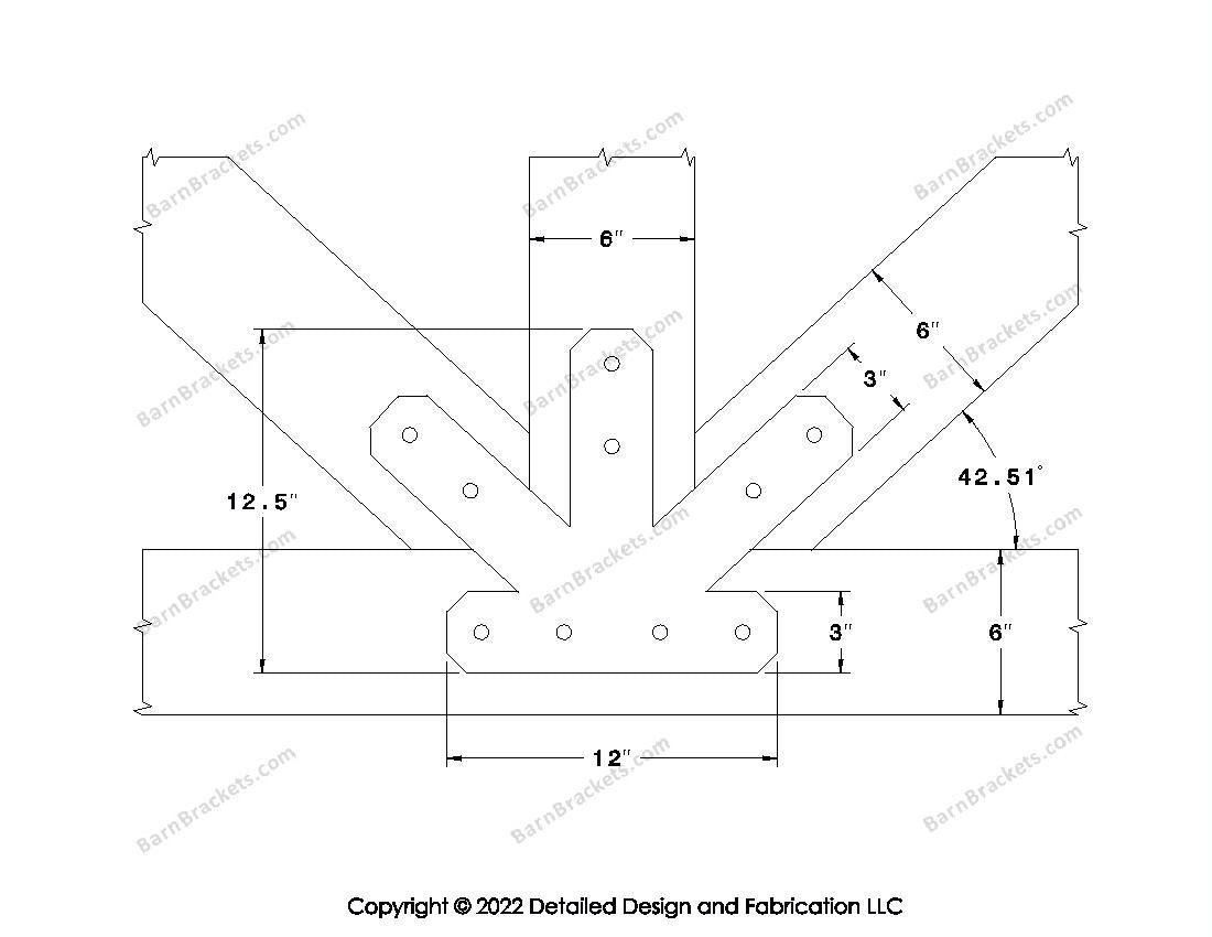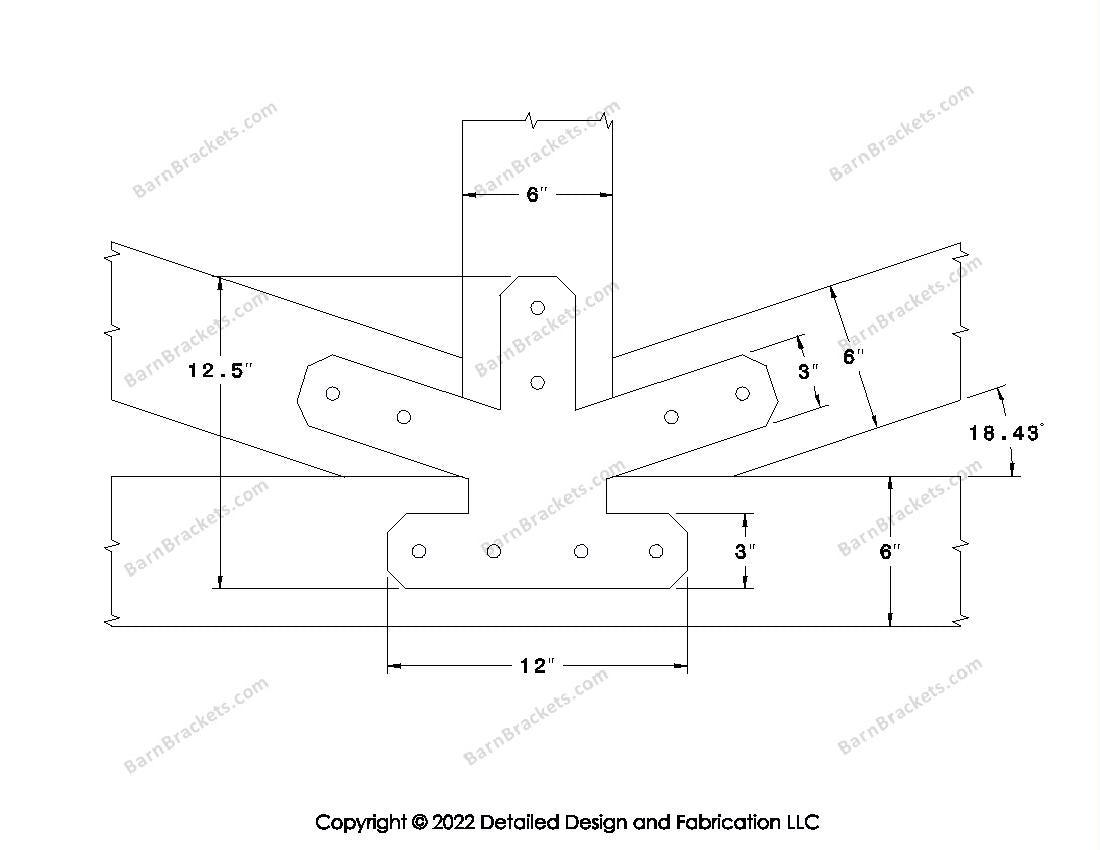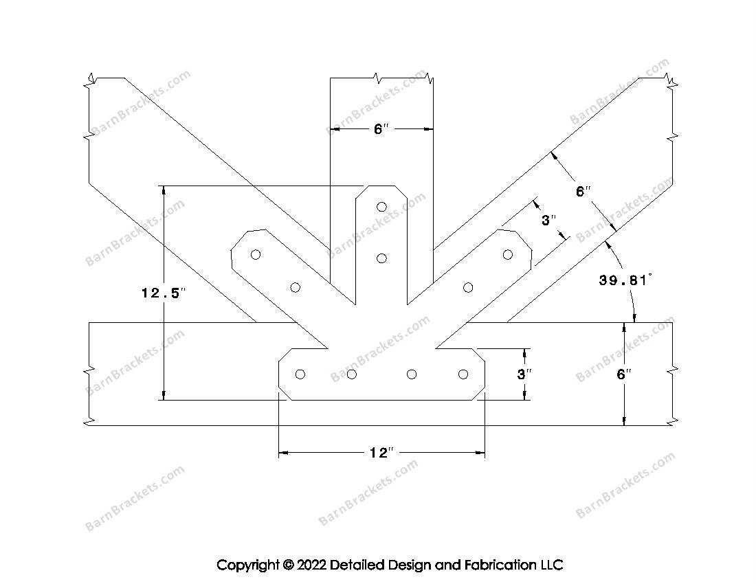 Fan Brackets for 6 inch beams - 3 inch Regular centered joint - Chamfered - Centered style holes - BarnBrackets.com