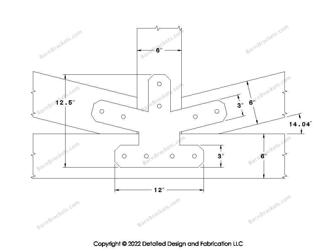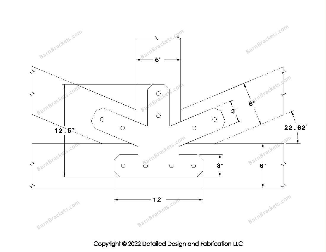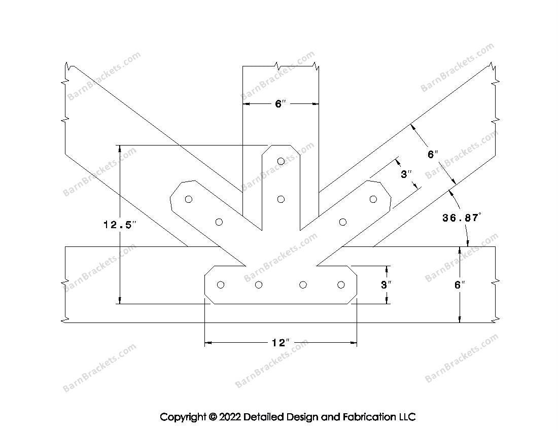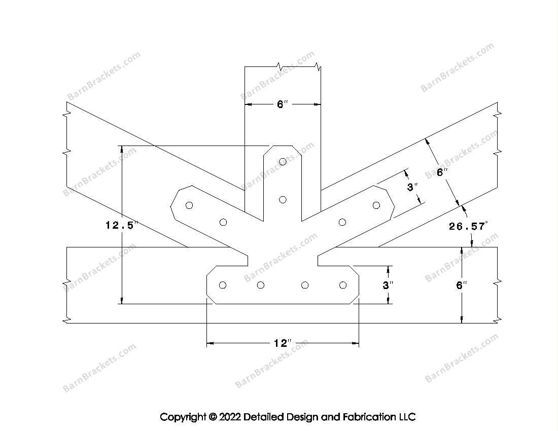 Fan Brackets for 6 inch beams - 3 inch Regular centered joint - Chamfered - Centered style holes - BarnBrackets.com