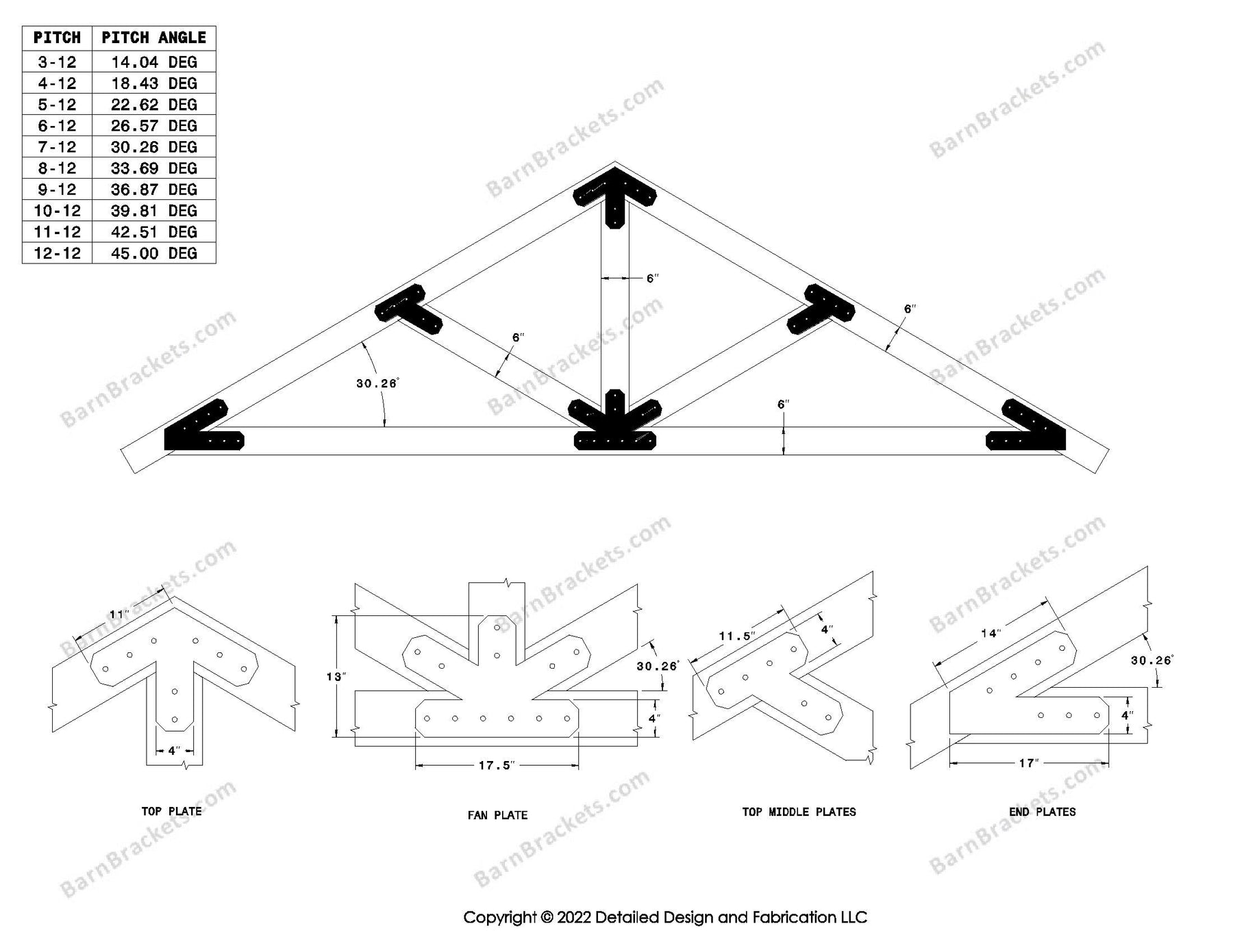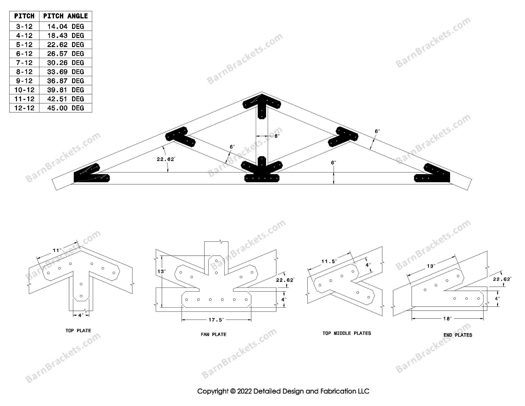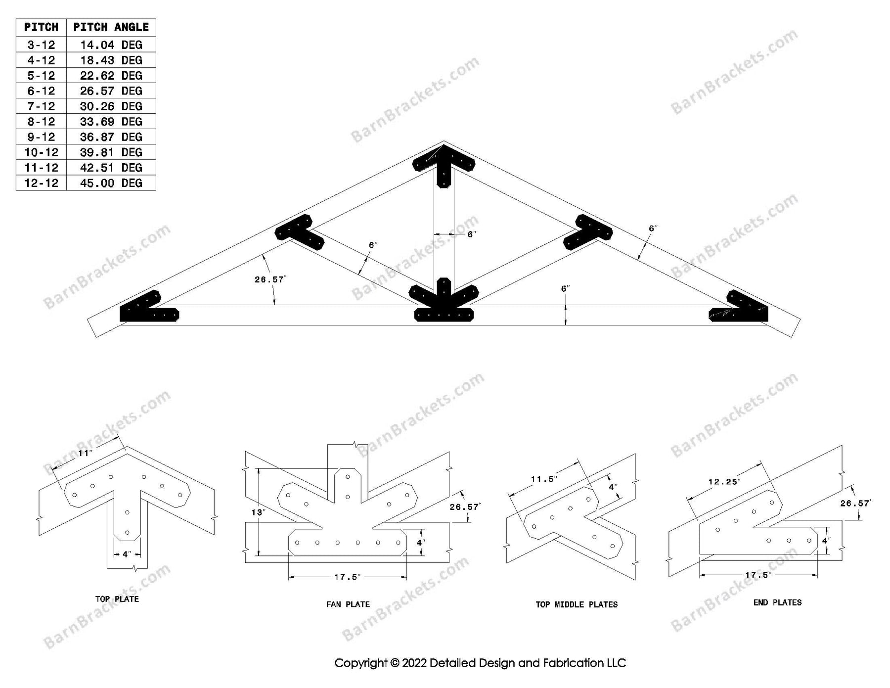 Six brackets per set - 2 sets are needed for both sides of the Timber Frame Truss