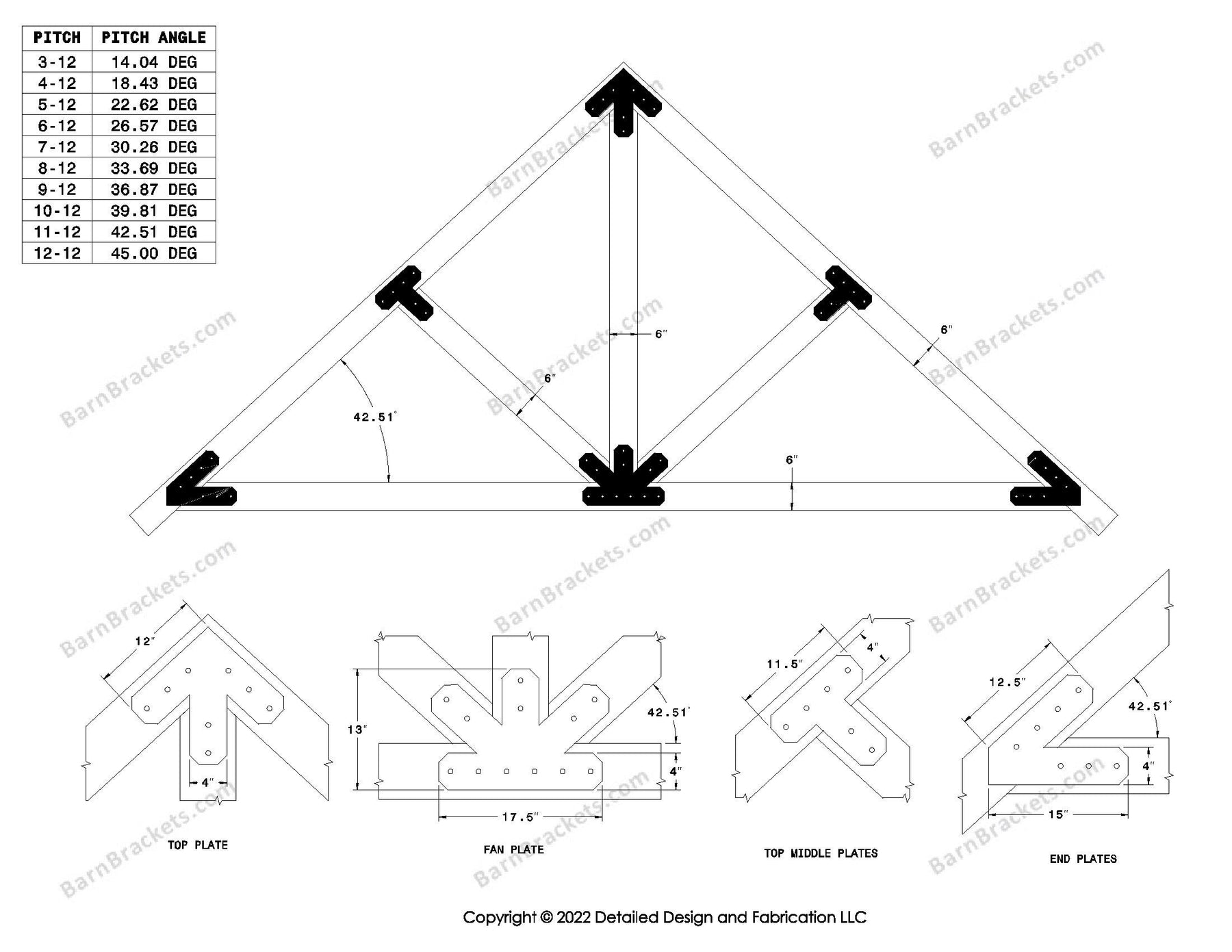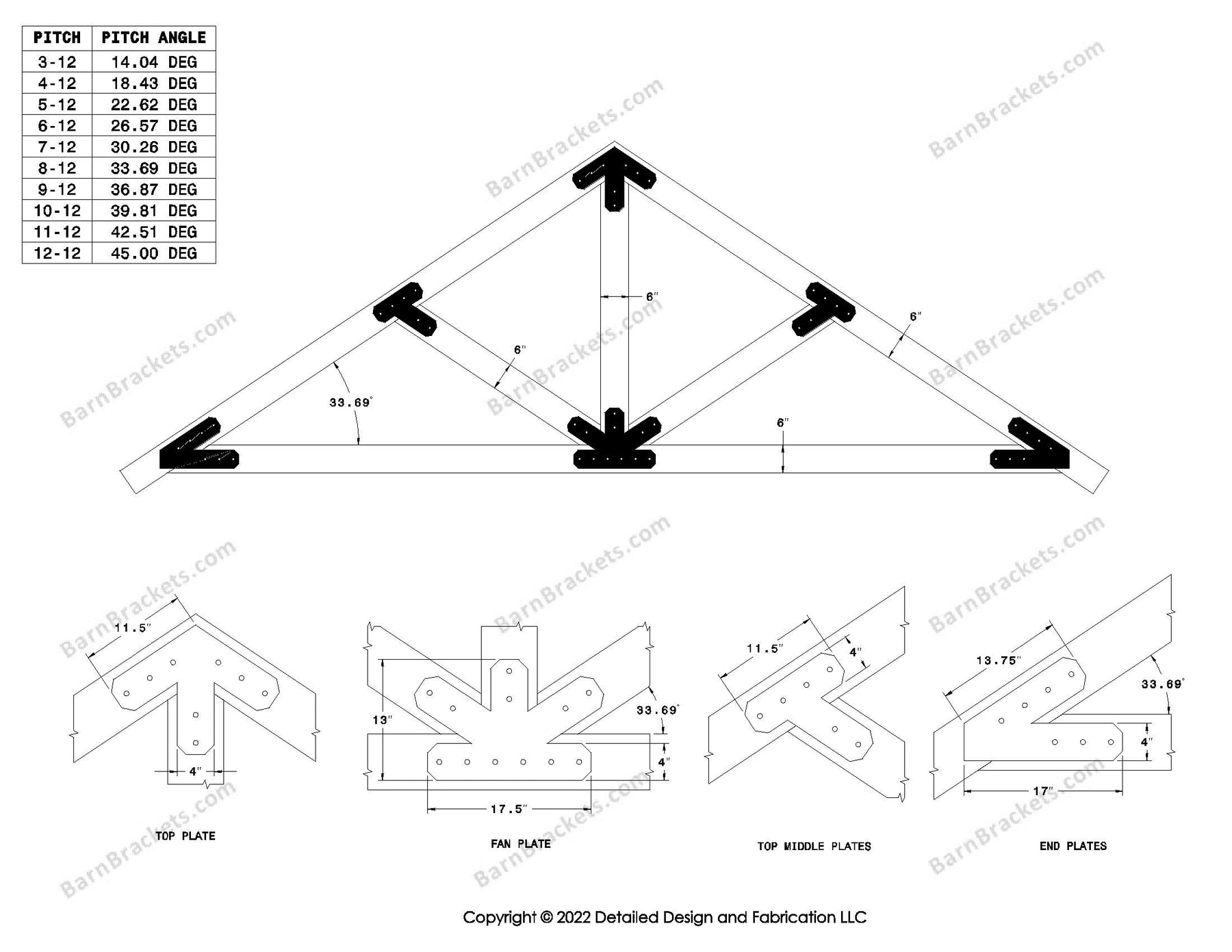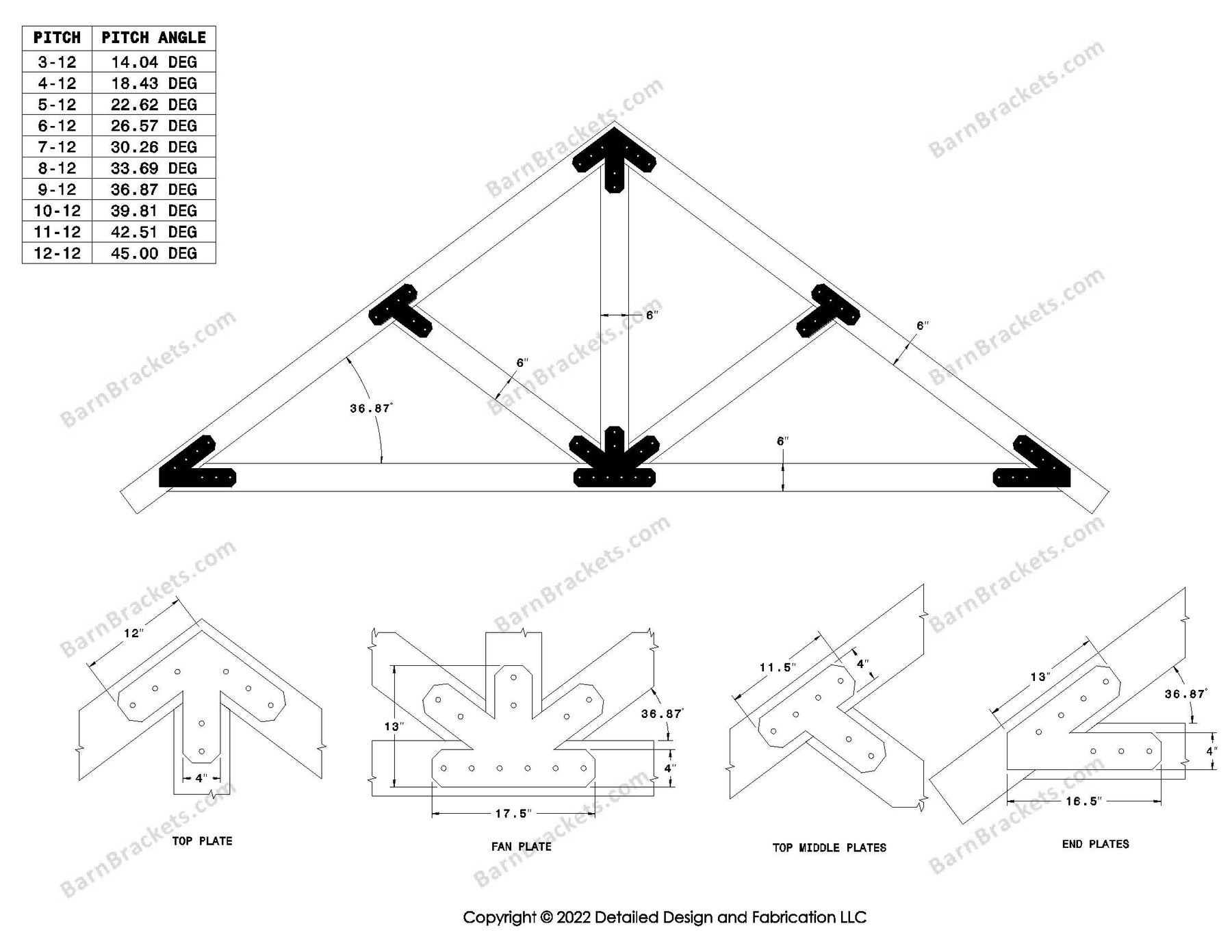 Six brackets per set - 2 sets are needed for both sides of the Timber Frame Truss