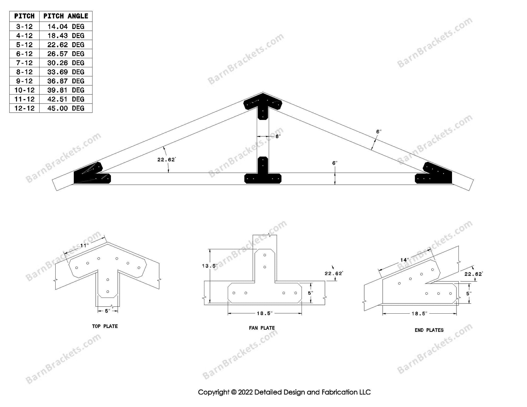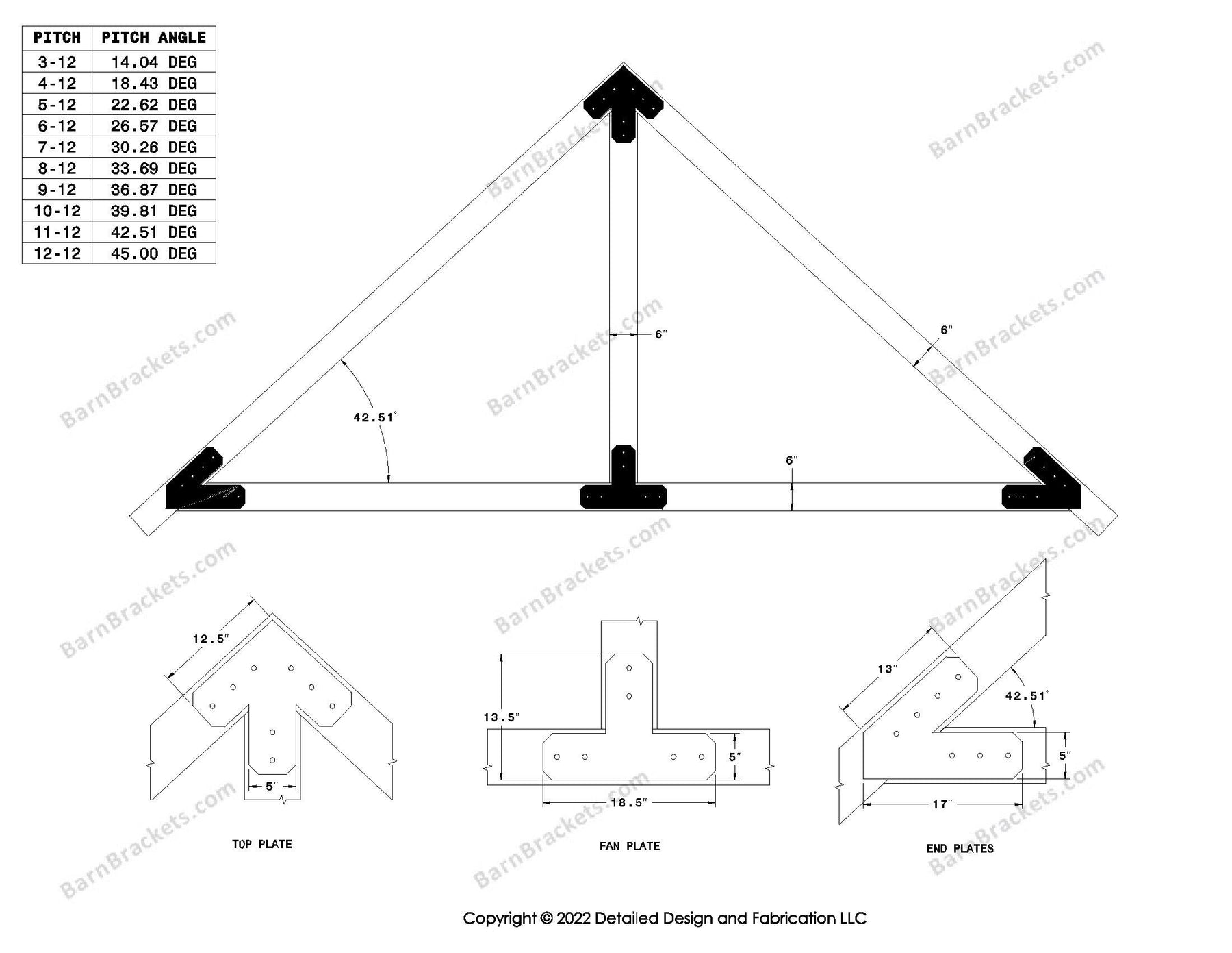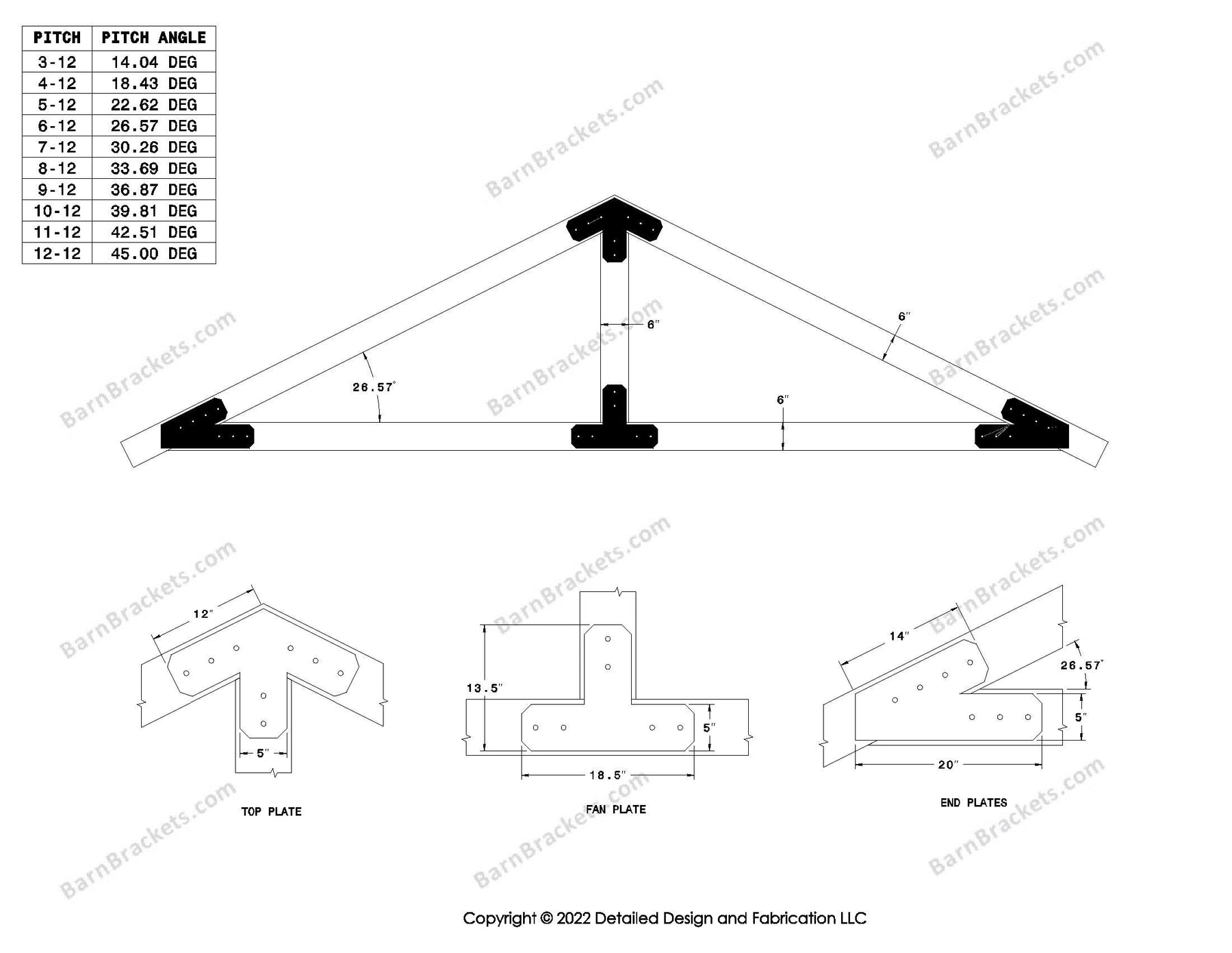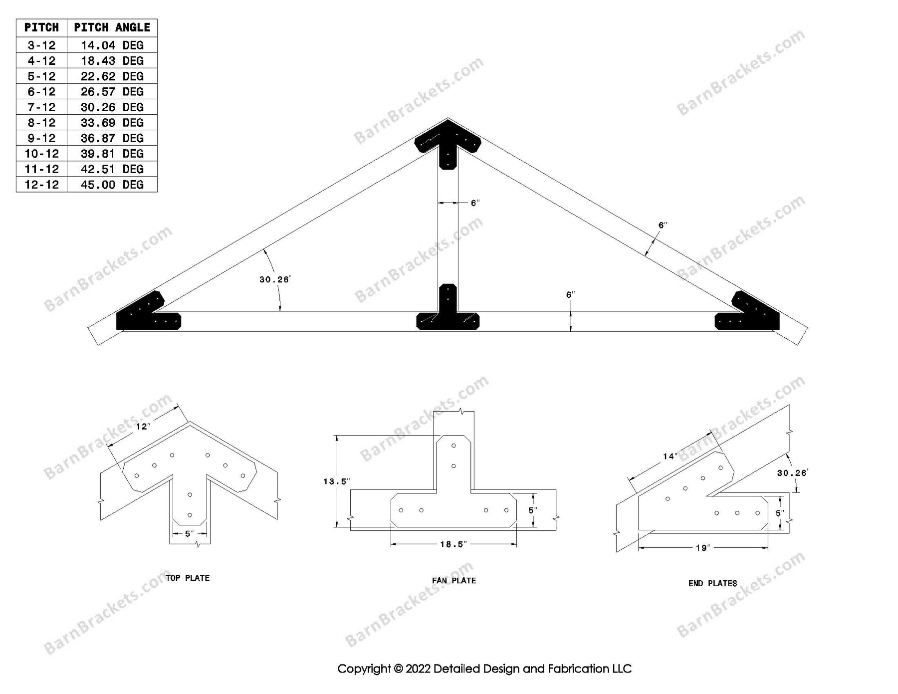 5 inch truss plate set for 6 inch beams - King post only - overhang ends - chamfered