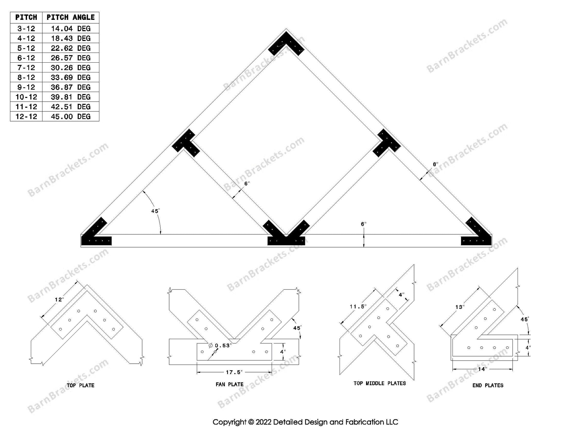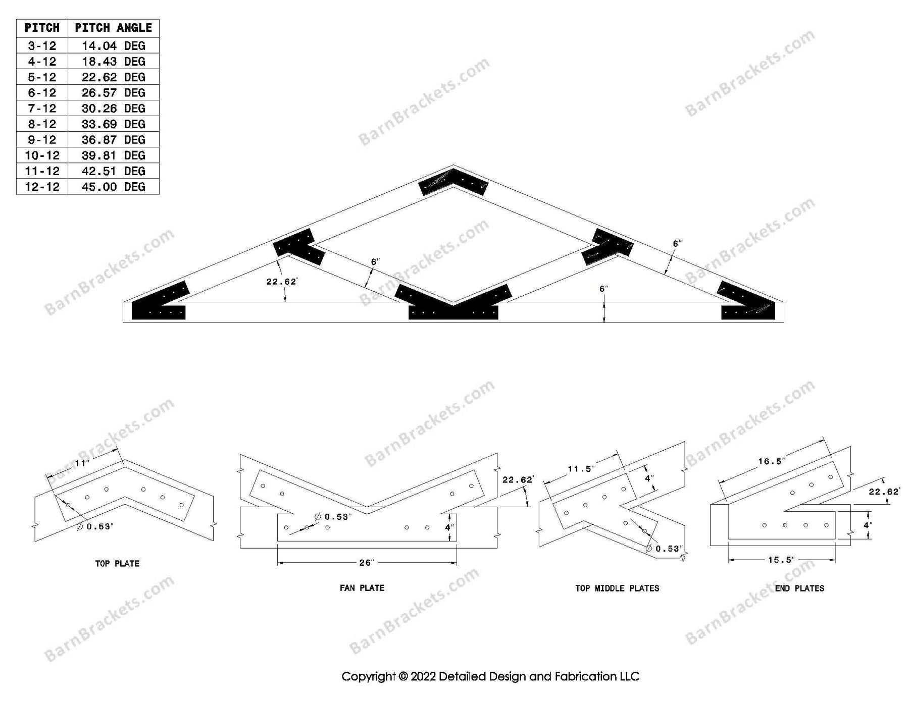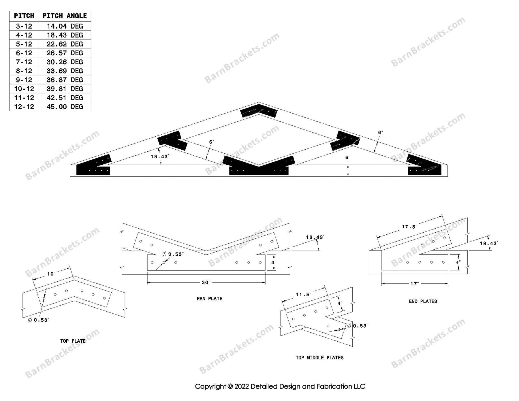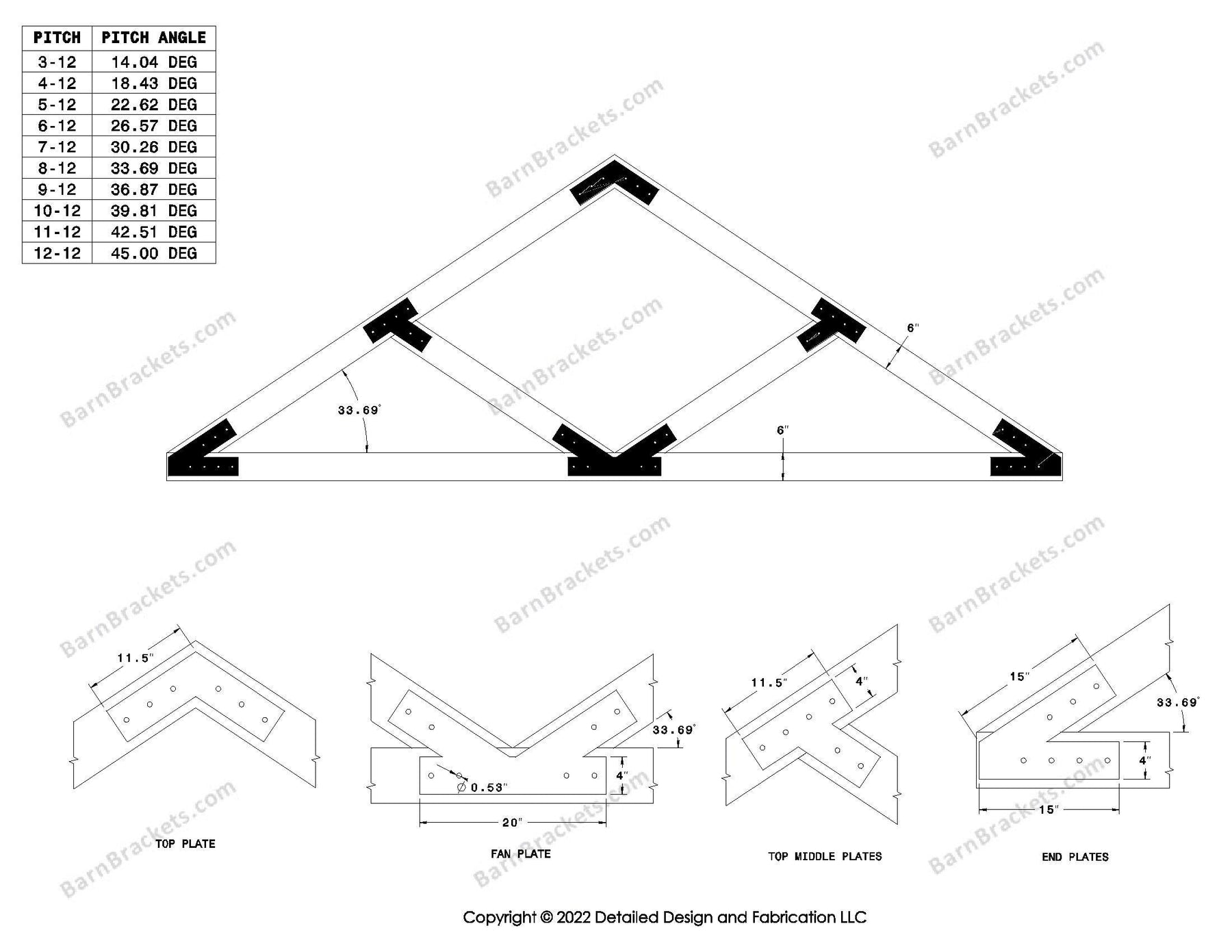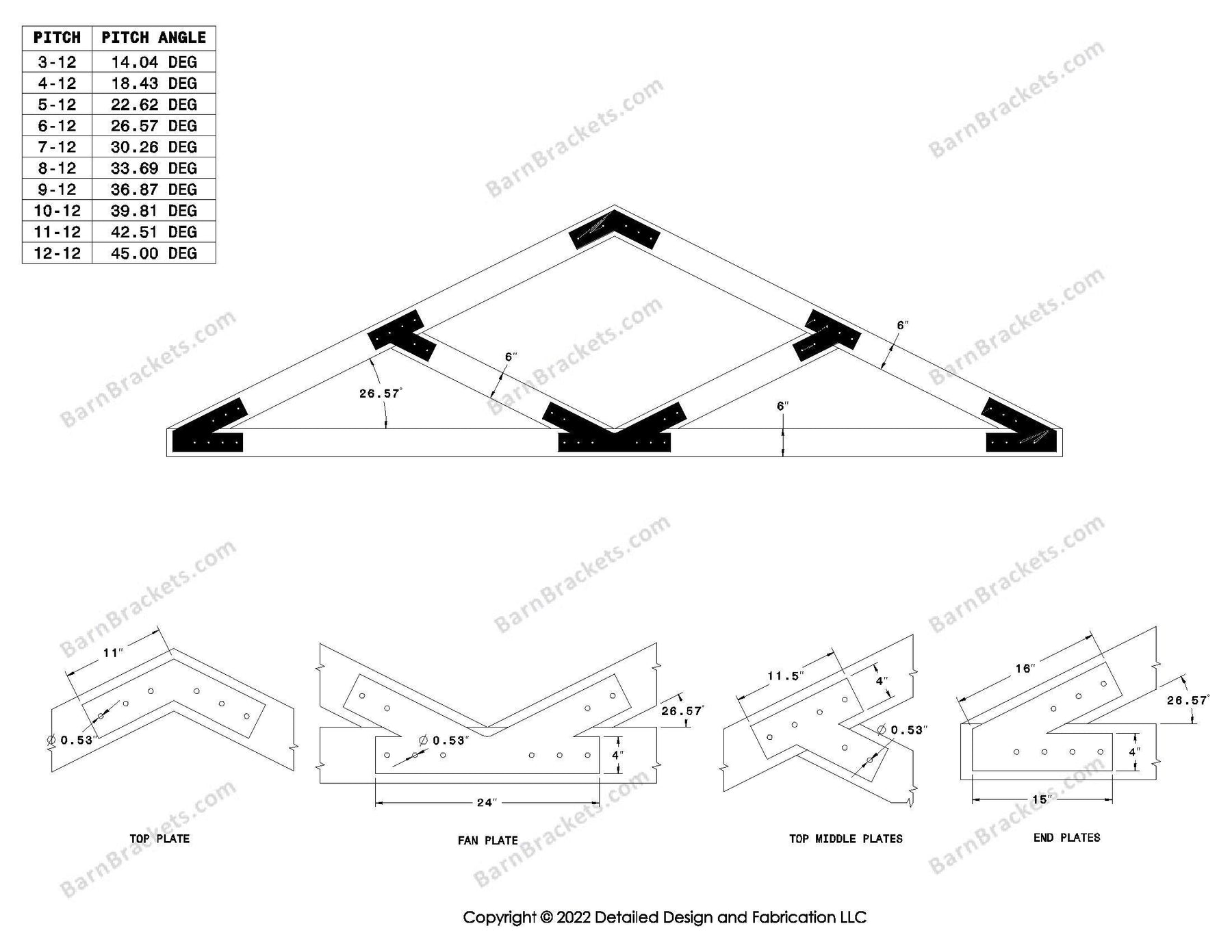 The information provided by Detailed Design and Fabrication LLC ("we," "us," "I," or "our") on www.barnbrackets.com and our mobile application is for general informational purposes only.  All information on the site and our mobile application is provided in good faith, however we make no representation of warranty of any kind, express or implied, regarding the accuracy, adequacy, validity, reliability, availability, or completeness of any information on the site or our mobile application.  UNDER NO CIRCUMSTANCES SHALL WE HAVE ANY LIABILITY TO YOU FOR ANY LOSS OR DAMAGE OF ANY KIND INCURRED AS A RESULT OF THE USE OF OUR PRODUCTS, THE SITE, OR OUR MOBILE APPLICATION OR RELIANCE ON ANY INFORMATION PROVDED ON THE SITE AND OUR MOBILE APPLICATION.  YOUR USE OF OUR PRODUCTS, THE SITE AND OUR MOBLIE APPLICATION AND YOUR RELIANCE ON ANY INFORMATION ON THE SITE AND OUR MOBILE APPLICATION IS SOLEY AT YOUR OWN RISK.