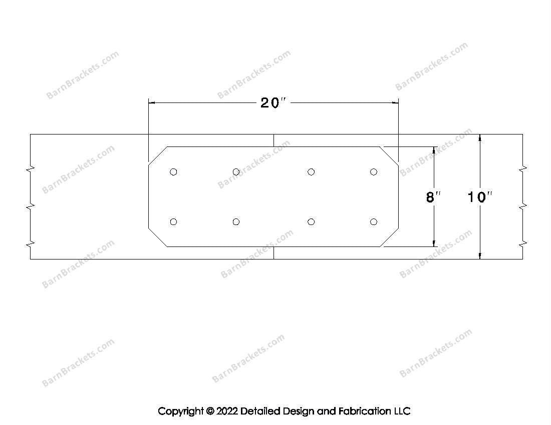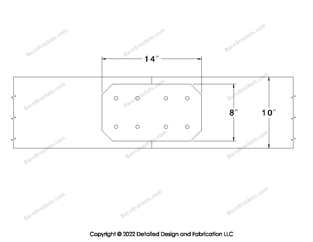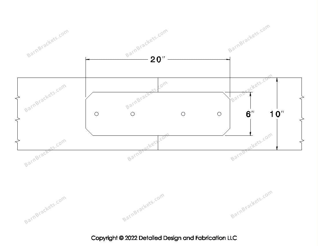 Union Brackets for 10 inch beams - Chamfered - Centered style holes - BarnBrackets.com