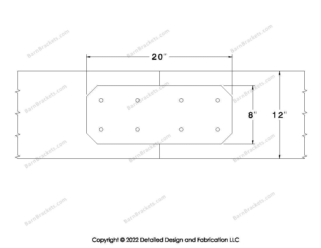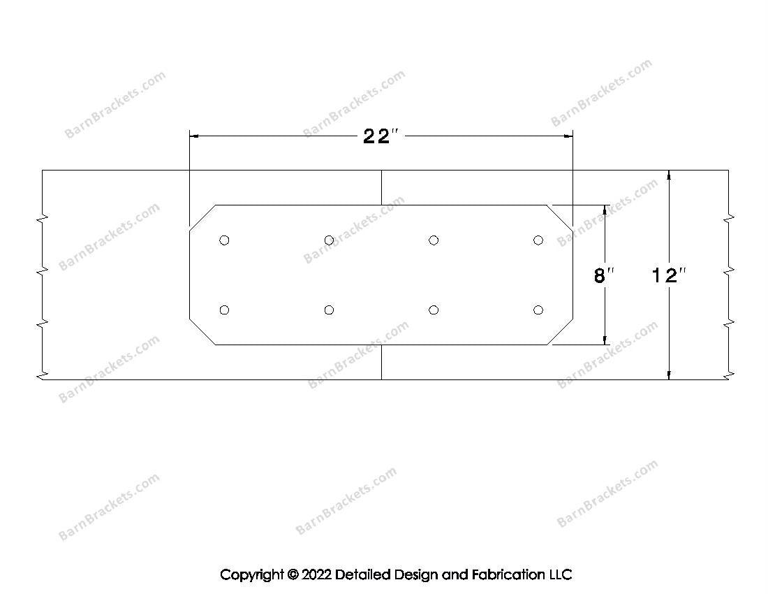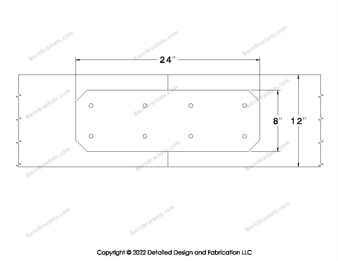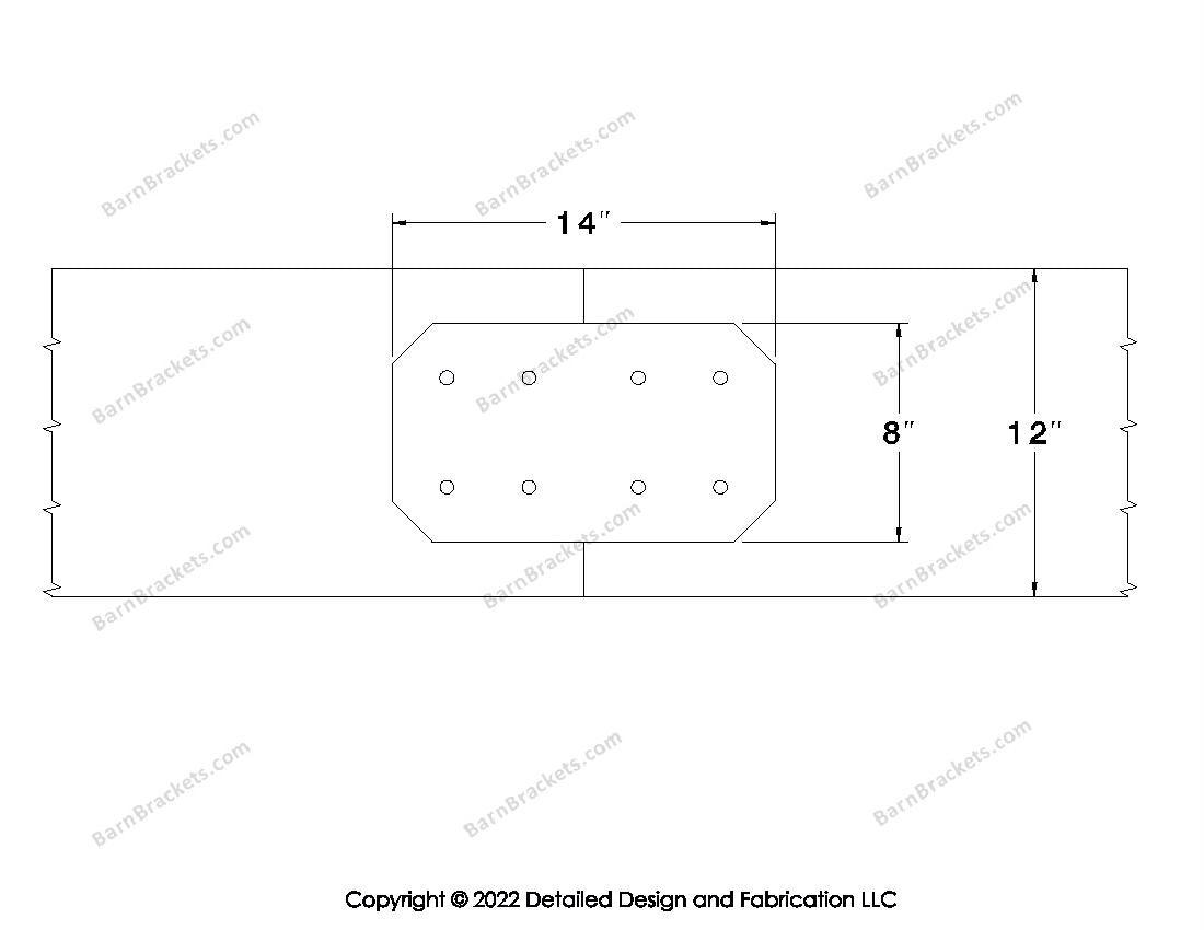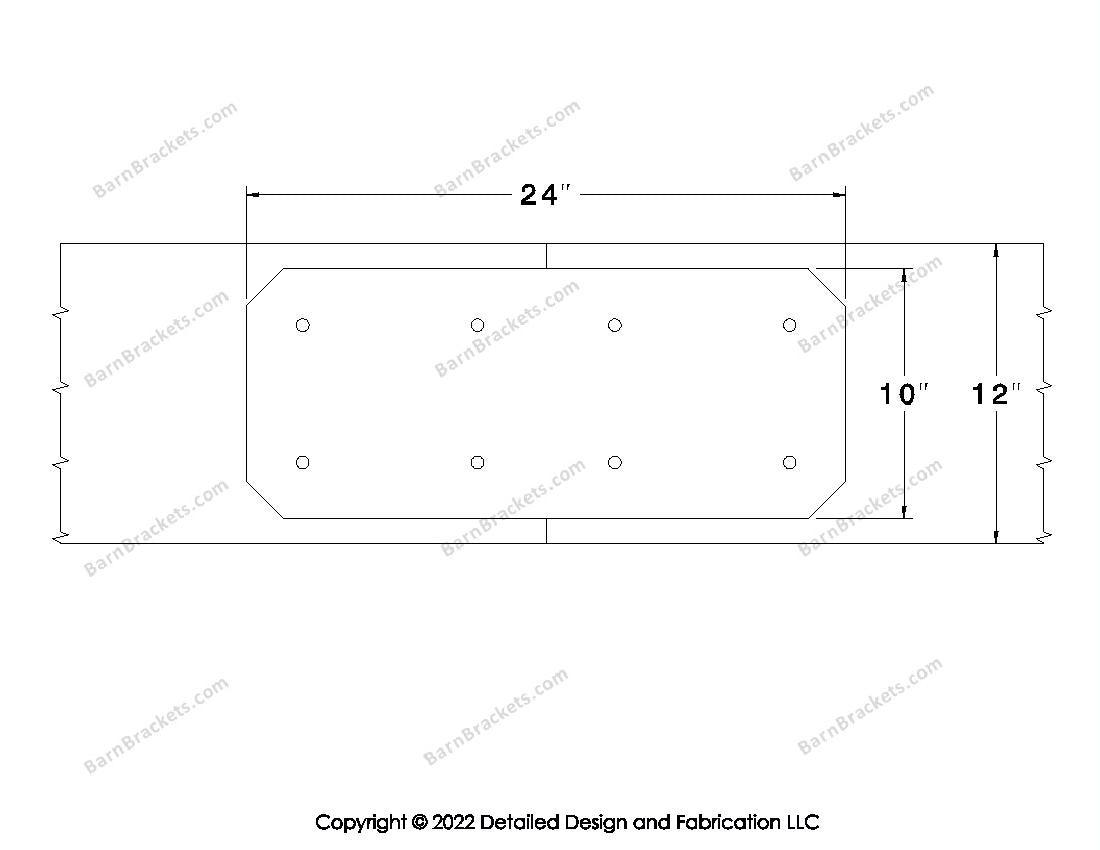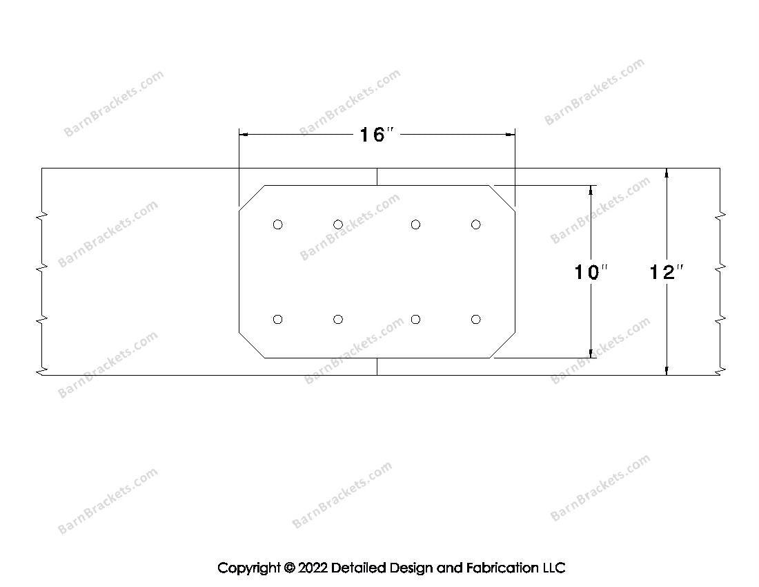 Union Brackets for 12 inch beams - Chamfered - Centered style holes - BarnBrackets.com