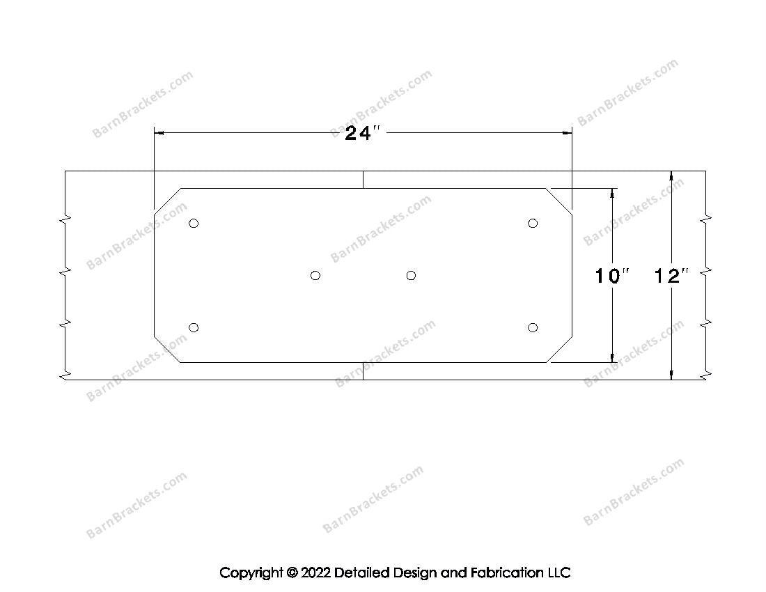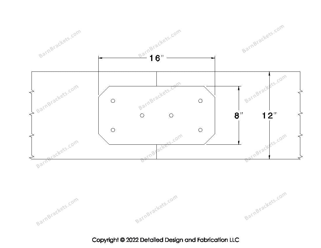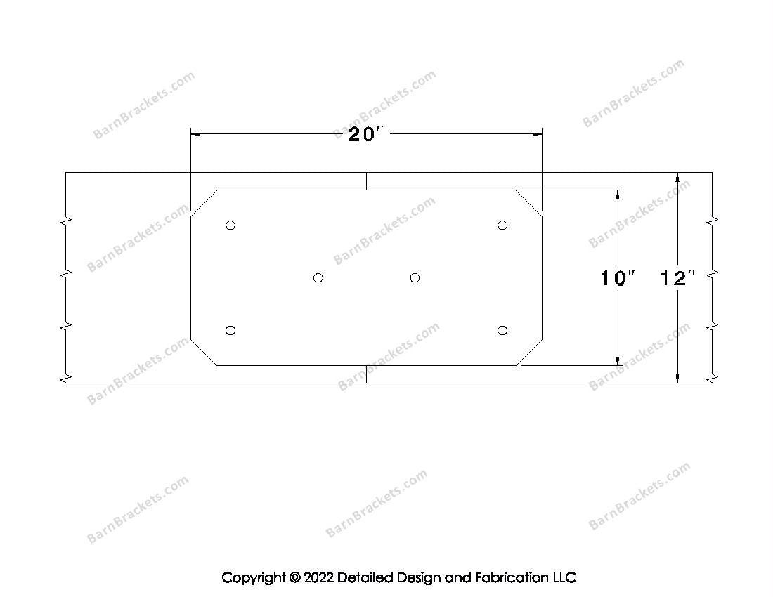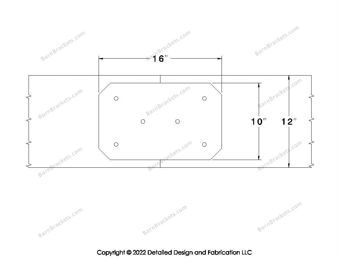 Union Brackets for 12 inch beams - Chamfered - Triangular style holes - BarnBrackets.com