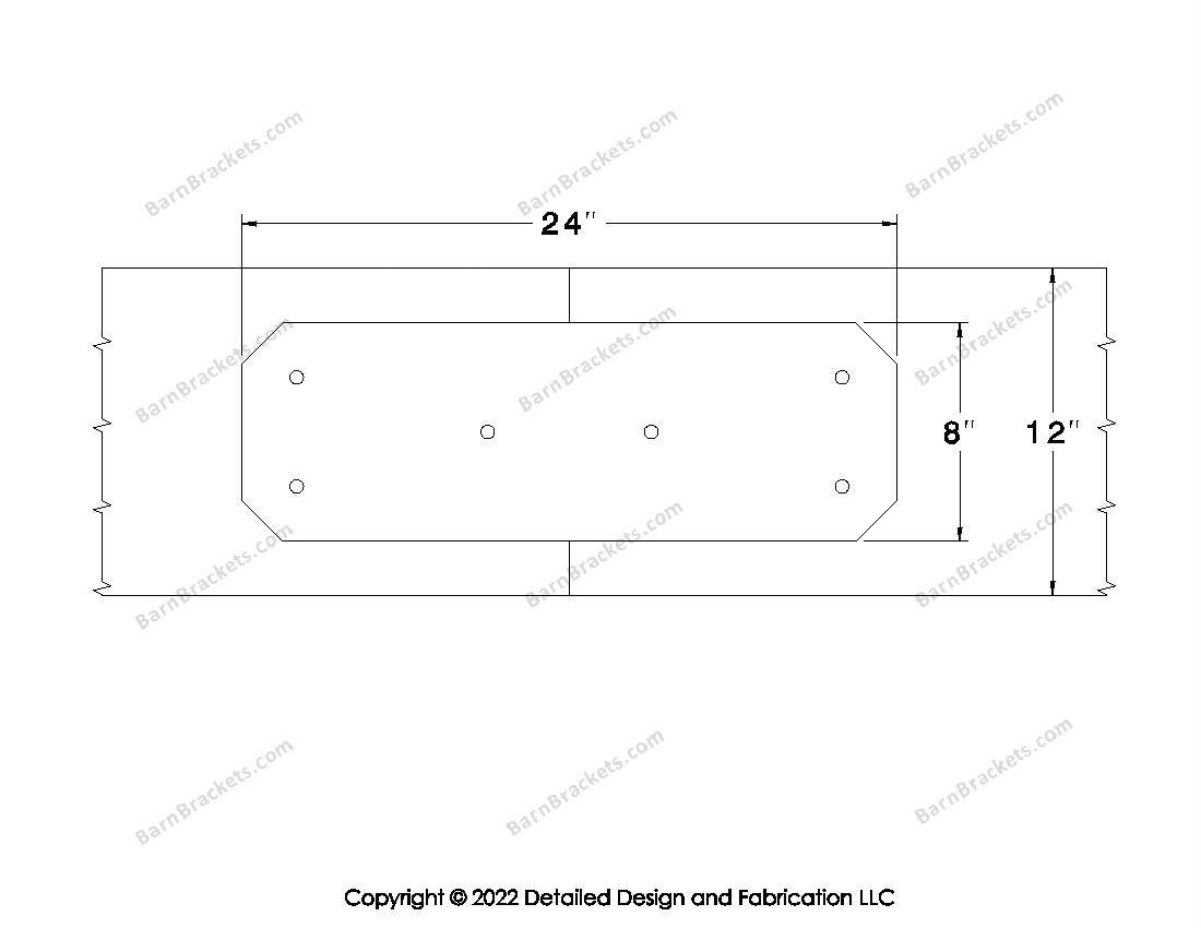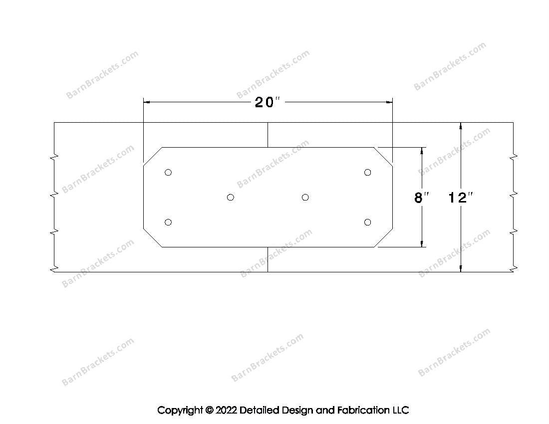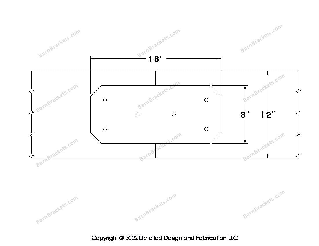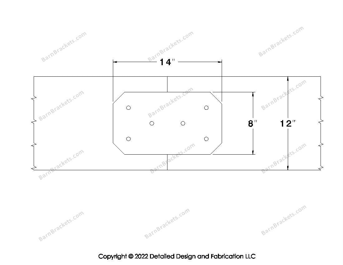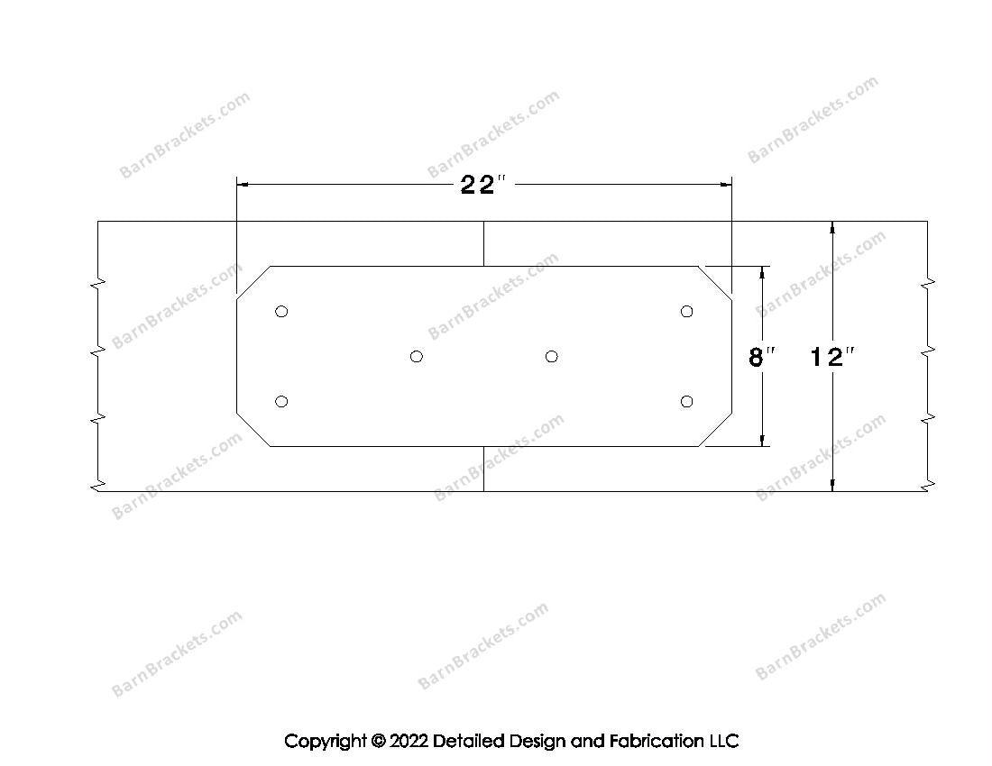 Union Brackets for 12 inch beams - Chamfered - Triangular style holes - BarnBrackets.com