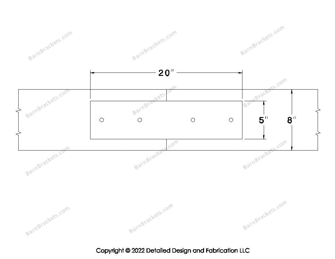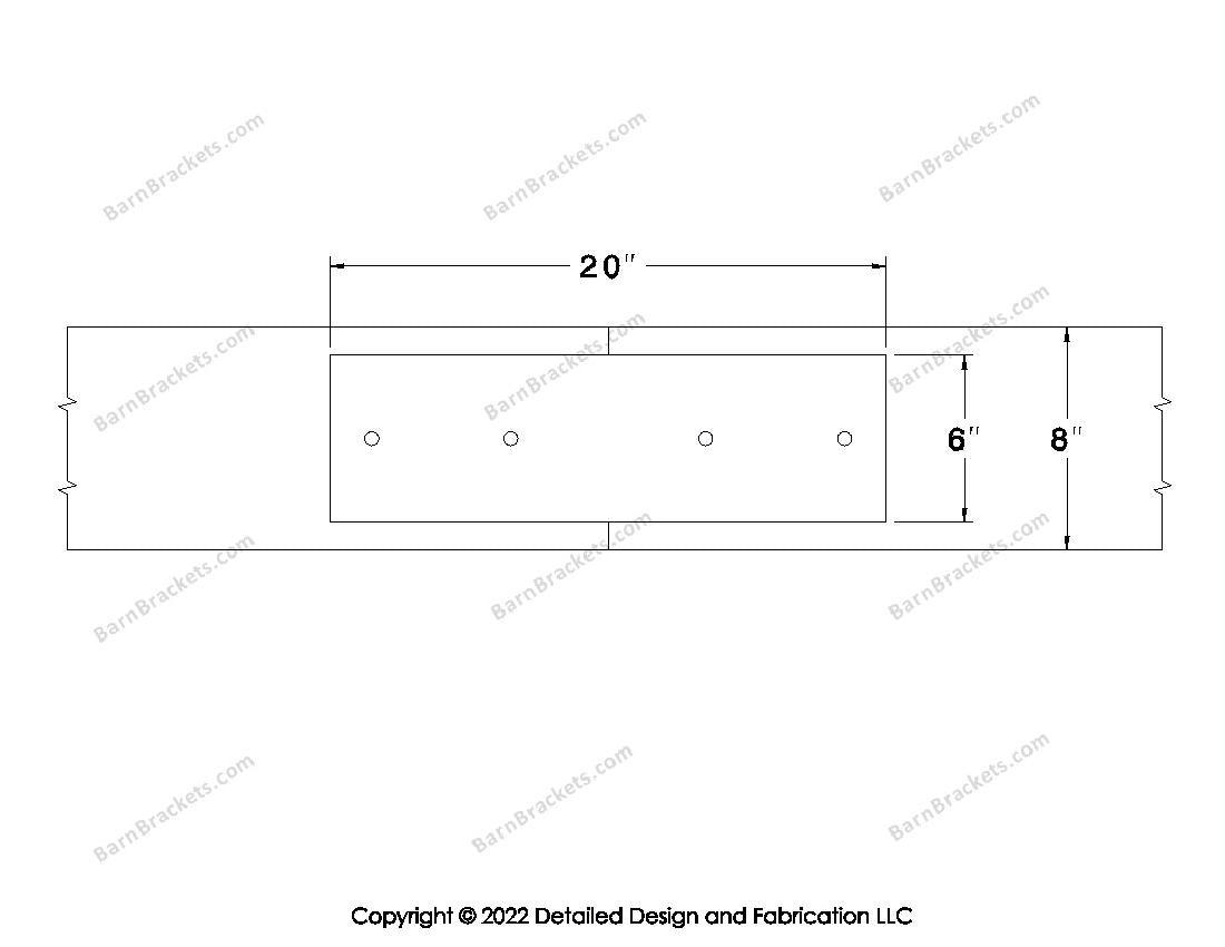 Union Brackets for 8 inch beams - Square - Centered style holes - BarnBrackets.com