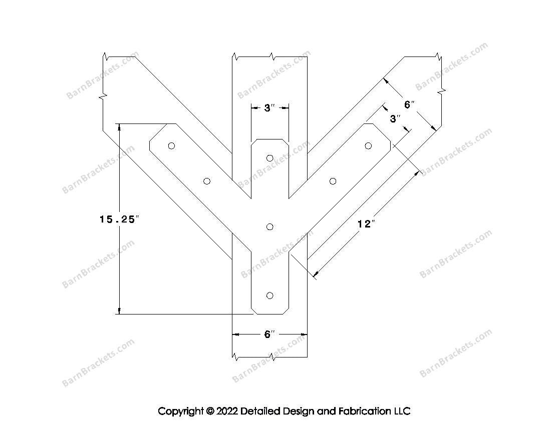 Full Y style Brackets for 6 inch beams - Centered style holes - Chamfered - BarnBrackets.com