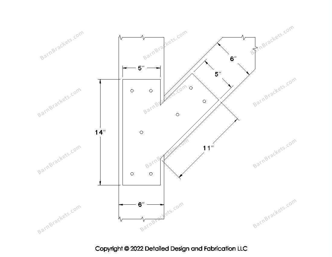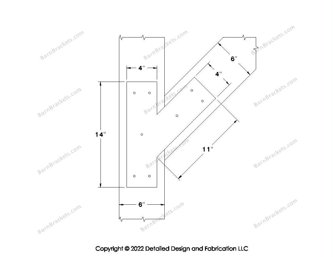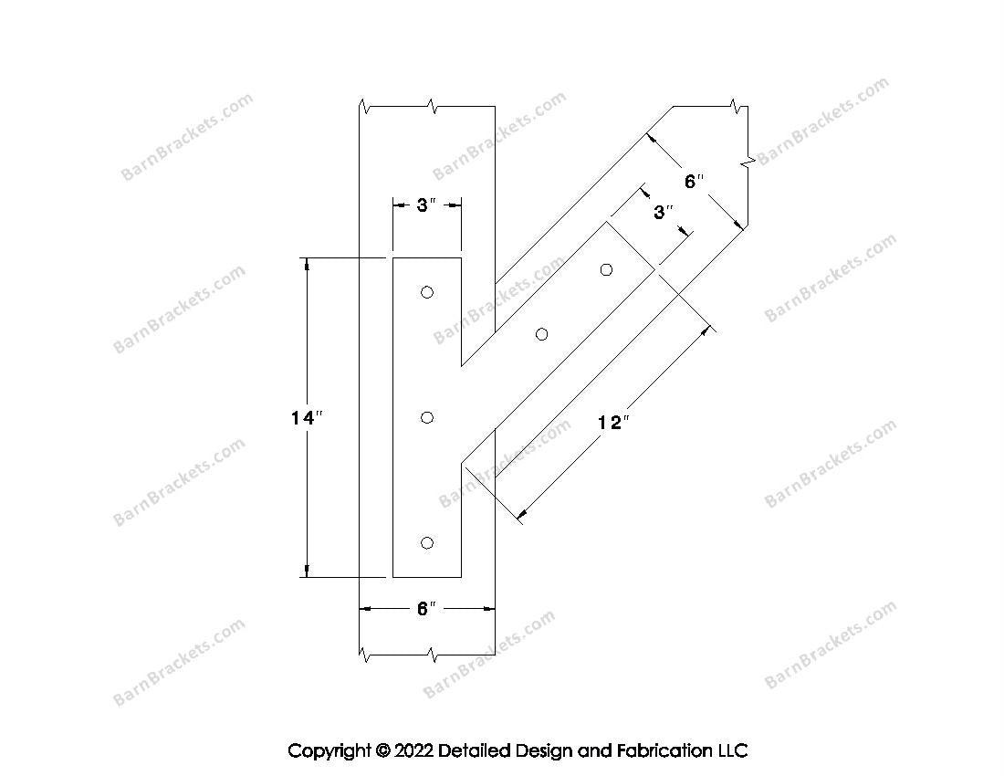Half Y shaped Brackets for 6 inch beams  - Triangular style holes - Square - BarnBrackets.com