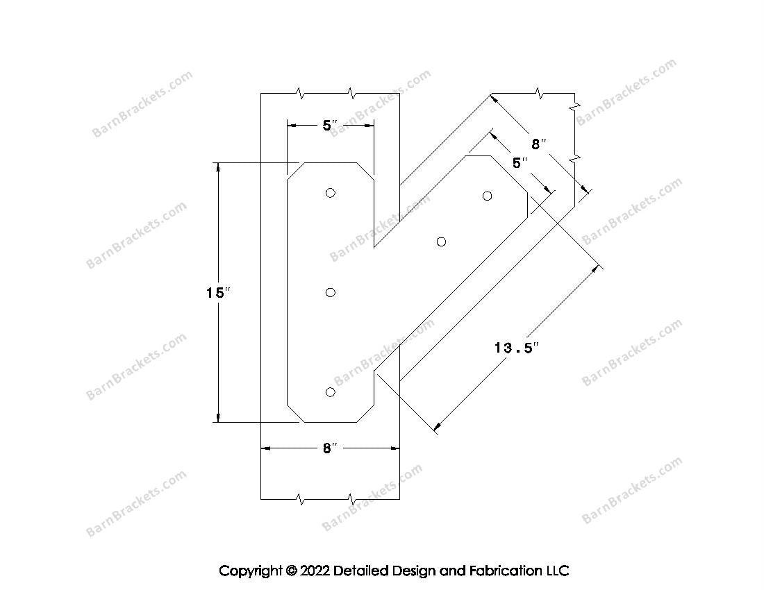 Half Y shaped Brackets for 8 inch beams - Centered style holes - Chamfered - BarnBrackets.com
