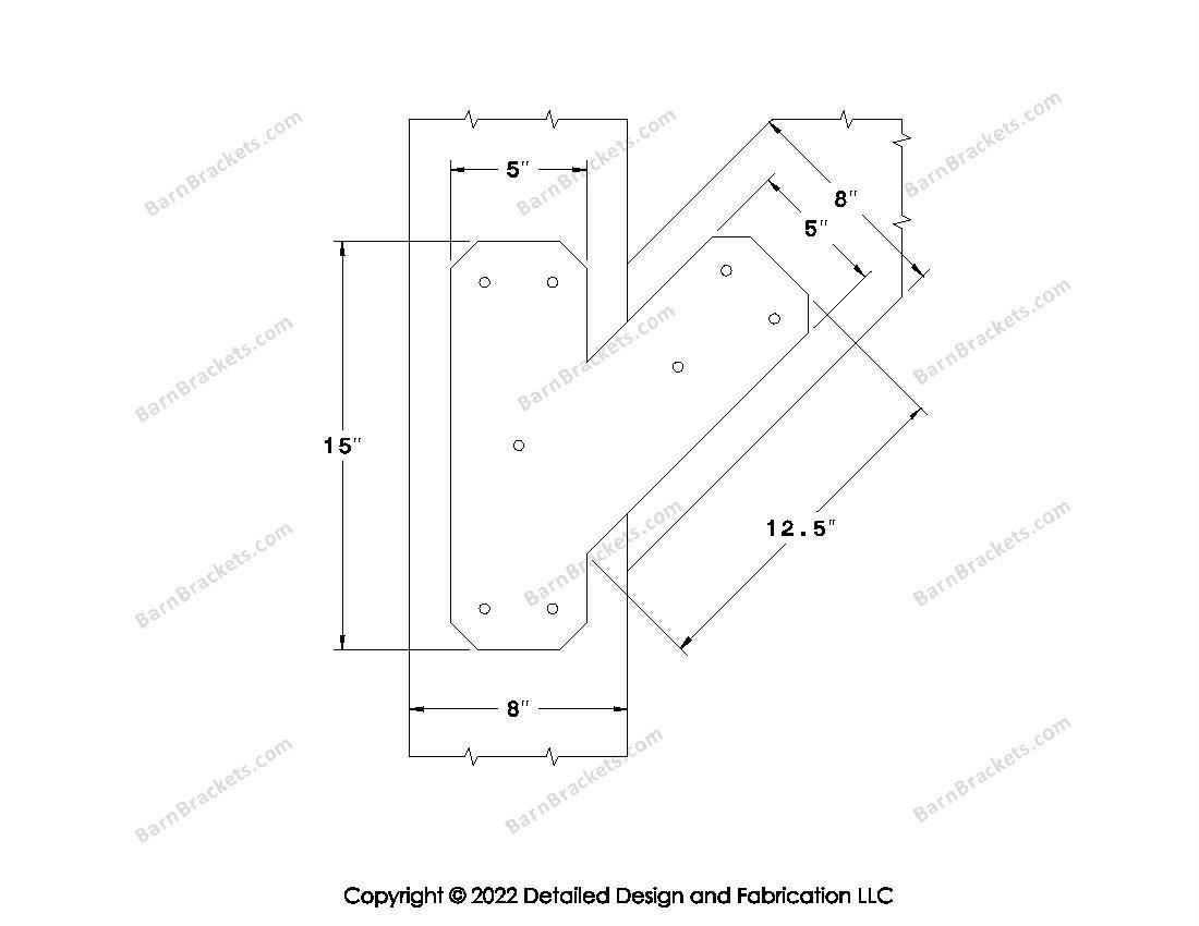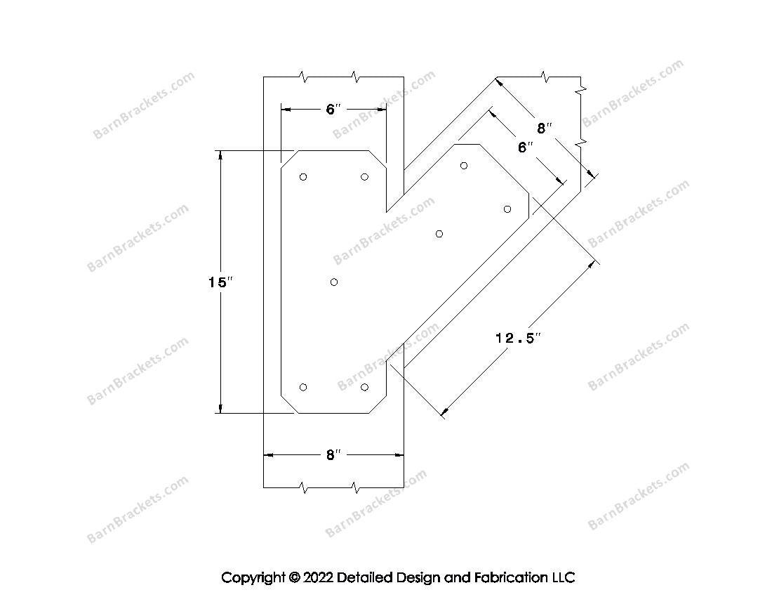 Half Y shaped Brackets for 8 inch beams - Triangular style holes - Chamfered - BarnBrackets.com