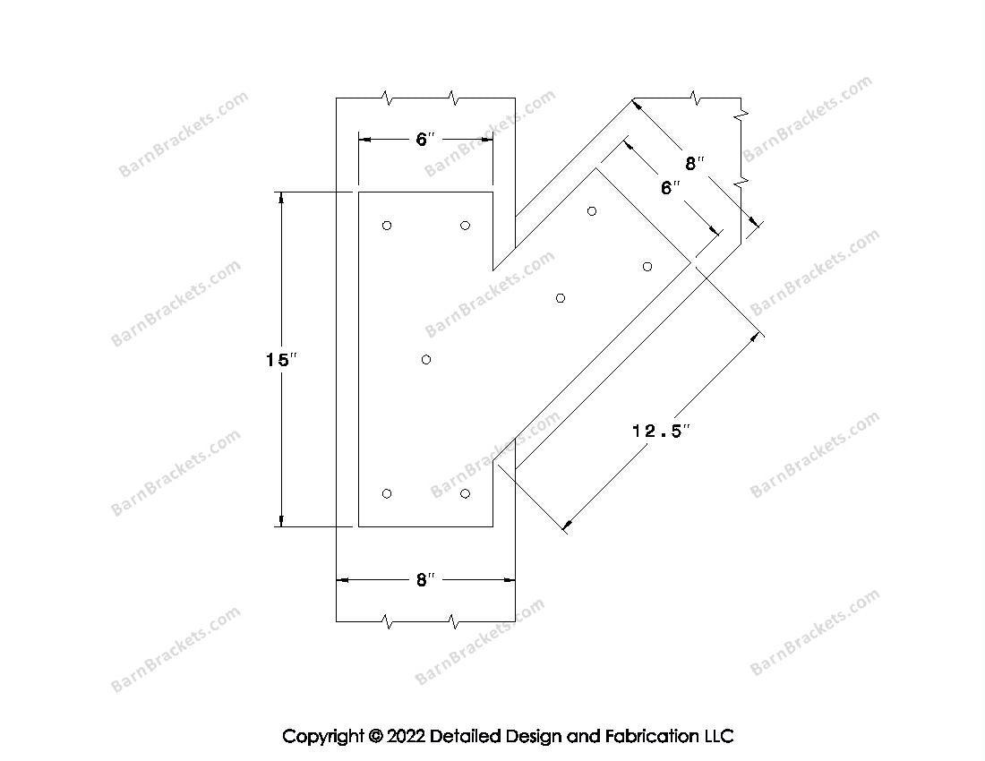 Half Y shaped Brackets for 8 inch beams - Triangular style holes - Square - BarnBrackets.com